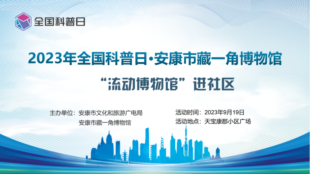 2023年是第二十届全国科普日,为贯彻落实“提升全民科学素质,助力科技自立自强”这一主题,调动全社会参与科普的积极性、主动性和创造性,促进全市人民科学素质的提升,安康市藏一角博物馆将于9月19日开展“流动博物馆”进社区活动。