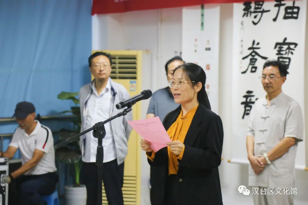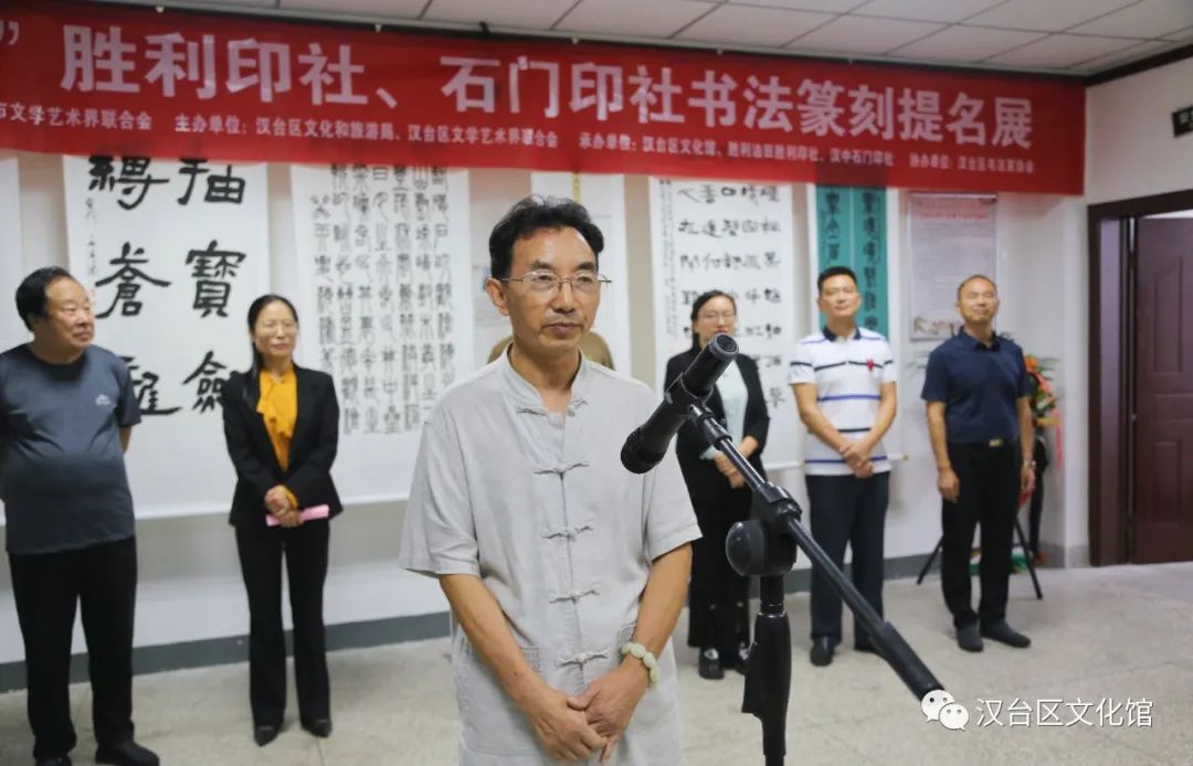 市文联副主席马俊惠,市文联组联部主任饶君,区文化和旅游局党组成员、副局长熊建,区文联副主席罗颐,区书协主席王景元,市退役军人协会常务副会长王汉武,胜利印社社长王雷,石门印社社长薛继军以及参展作者代表、文艺界人士等80余人参加开幕式。汉台区文化馆支部书记刘艳主持开幕式。