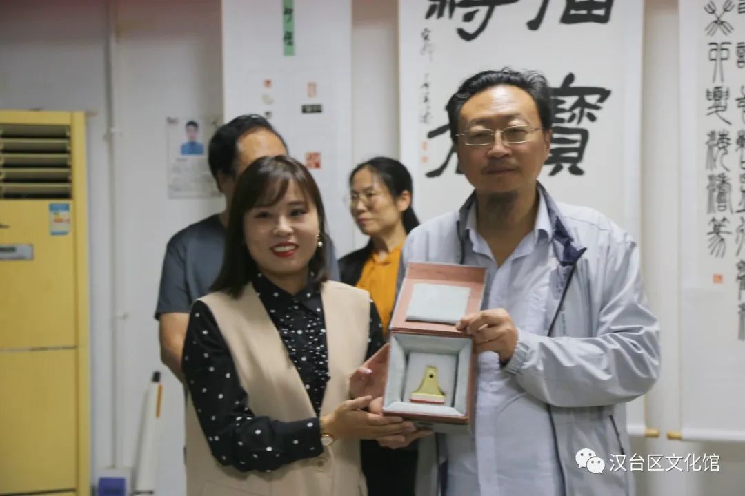 区文化和旅游局党组成员、副局长熊建,市文联组联部主任饶君为王雷社长、薛继军社长颁发收藏证书