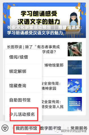 关注西安市长安区图书馆微信公众号——“我的图书馆”——“少儿活动报名”,活动里填写报名信息提交。