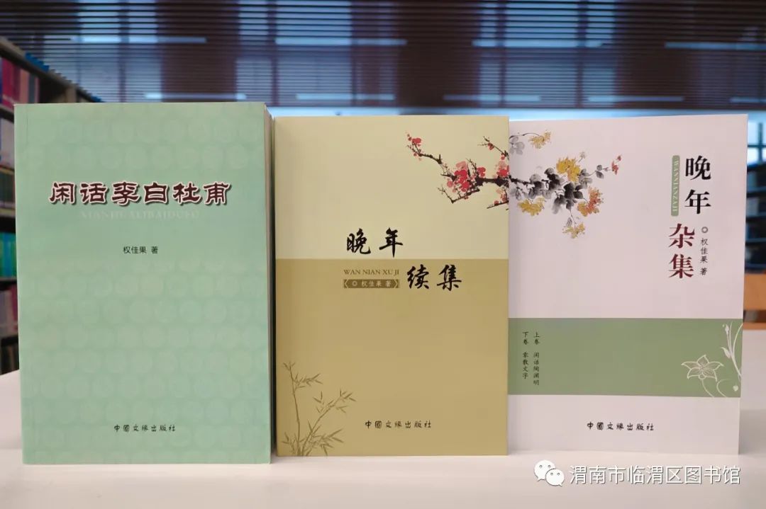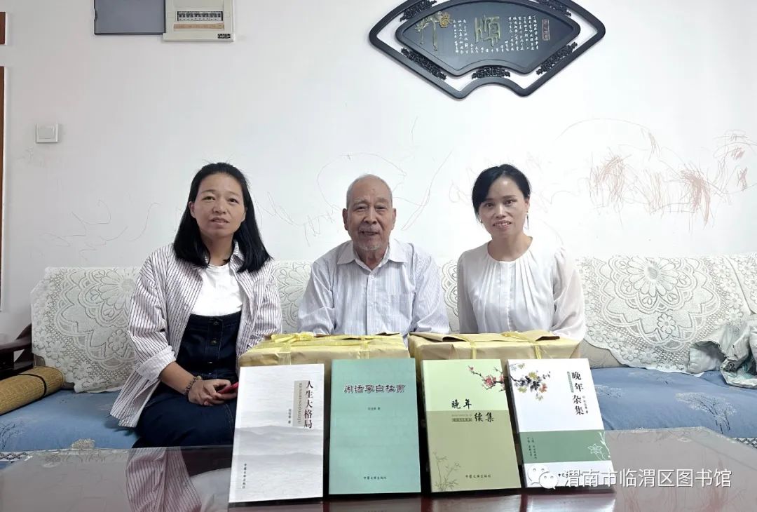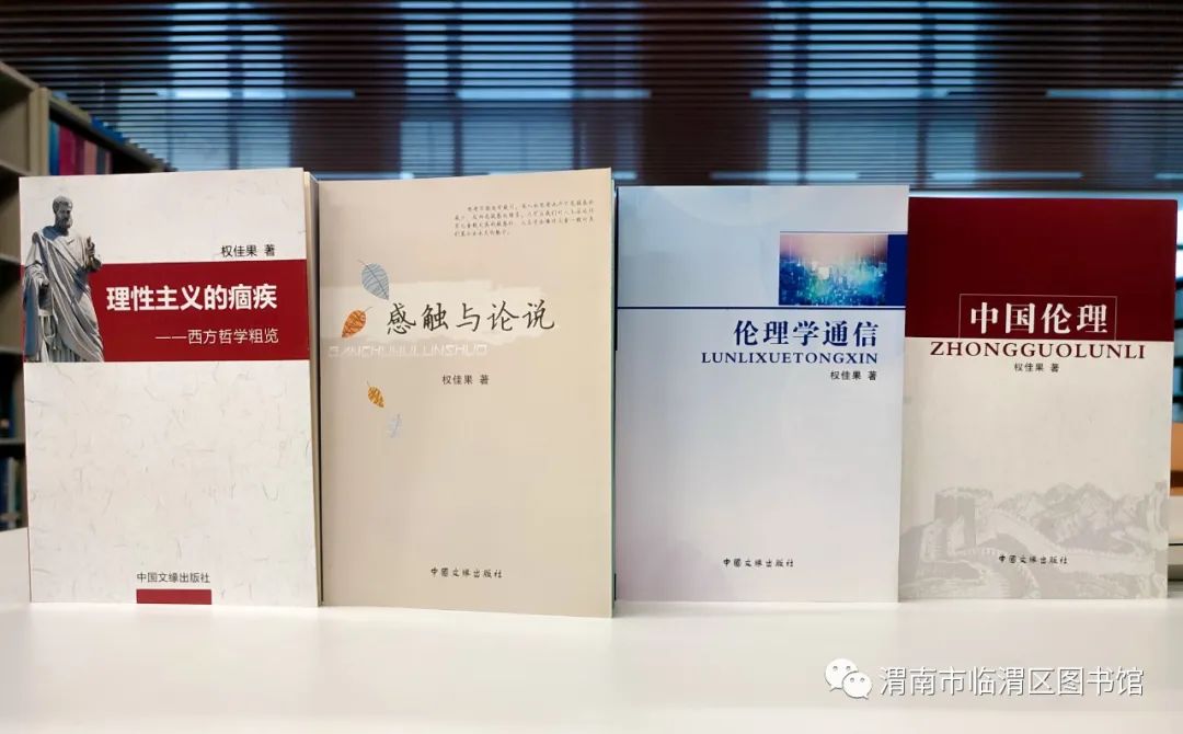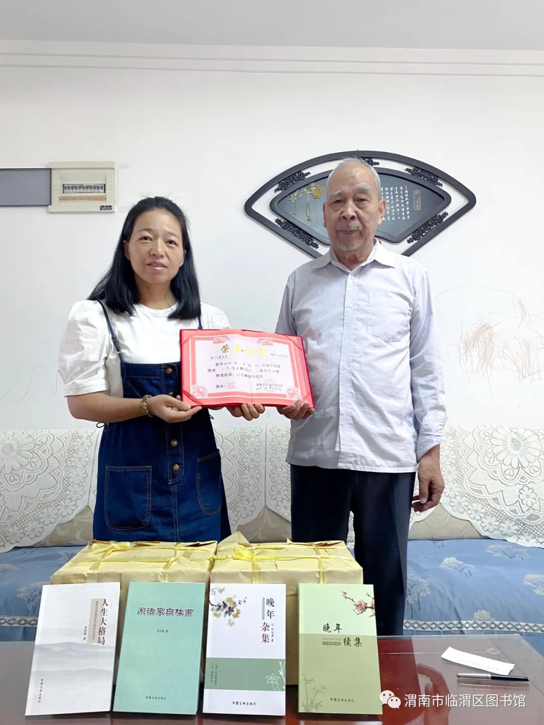 收费信息:免费9月14日上午,渭南师范学院退休教师、副教授权佳果先生向临渭区图书馆捐赠个人专著共11种25册,分别是《人生大格局》《闲话李白杜甫》《晚年杂集》《理性主义的痼疾》《感触与论说》《中国伦理》《晚年续集》《民谣与诗》《伦理学通信》《中国哲学与印度哲学》及《家乡与我》。我馆党支部书记贺咪娜同志带领地方文献室负责人前往其家中接受捐赠,并为其颁发收藏证书。