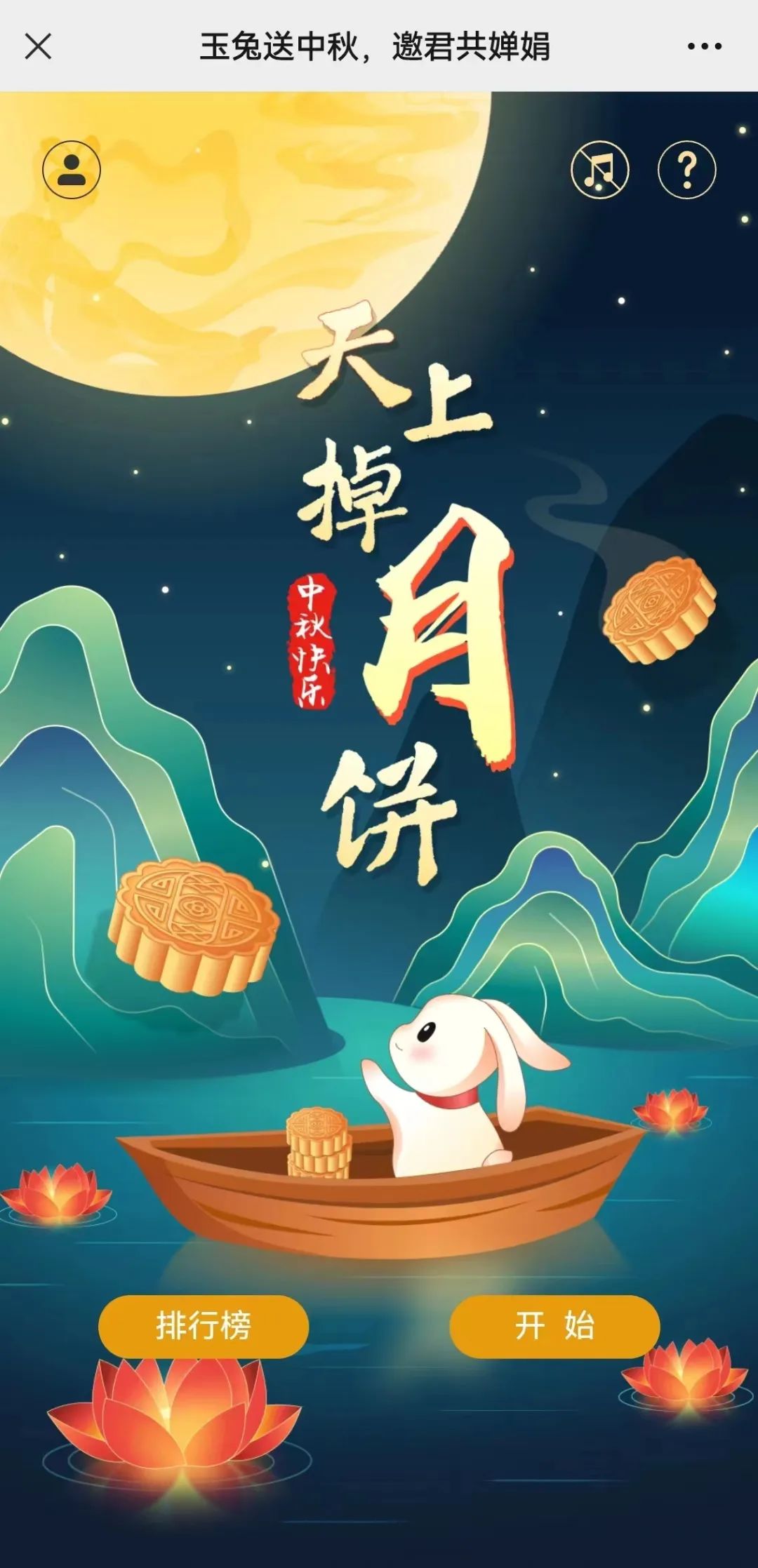 收费信息:免费中 秋 佳 节 月近中秋月近圆,情至中秋情更浓。 转眼又快到了一年一度的中秋节了,在这个团团圆圆的节日中,碑林区图书馆特邀您共玩“玉兔喊你来接月”线上活动,与家人们一起动动手指,就能赢得精美礼品!快扫码参与游戏,动手接天上掉下的月饼吧~ 活 动 规 则 HAPPY MID-AUTUMN FESTIVAL 活动时间 2023年9月27日——9月30日 游戏规则 1、扫描下方二维码,点击“开始游戏”,读者将进入游戏页面。 2、屏幕顶部会随机掉落月饼、大闸蟹、塑料袋等物,玩家需要在限定时间内,用手指控制左右滑动控制玉兔,接住掉下来的礼物。 3、接到各类月饼和大闸蟹得分,接到塑料袋扣分,注意不要接到塑料袋哦! 参与方式 扫描下方二维码即可参与 活动奖项 活动按照接住掉落物品累计得分排名。每次游戏结束进行排名,排名取历史最高分。分数相同时,以时间顺序为原则,先参加的排名靠前。 一等奖2名:竹节玻璃杯 二等奖3名:笔记本 三等奖5名:书签 月 饼 知 识 俗话中有:“八月十五月正圆,中秋月饼香又甜”。月饼最初是用来祭奉月神的祭品。 “月饼”一词,最早见于南宋吴自牧的《梦梁录》中,那时,它也只是像菱花饼一样的饼形食品。后来人们逐渐把中秋赏月与品尝月饼结合在一起,寓意家人团圆的象征。 月饼最初是在家庭制作的,清袁枚在《随园食单》中就有记载月饼的做法。 到了近代,有了专门制作月饼的作坊,月饼的制作越越来越精细,馅料考究,外型美观。 在月饼的表面还印有各种精美的图案,如“嫦娥奔月”、“银河夜月”、“三潭印月”等。 以月之圆兆人之团圆,以饼之圆兆人之常生,用月饼寄托思念故乡,思念亲人之情。祈盼丰收、幸福,都成为天下人们的心愿,月饼还被用来当做礼品送亲赠友,联络感情。 人间天上,歌起舞飞旋 平分秋色一轮满 波涌万种缠绵,海底倒映天 仲秋初月 天涯海角共赏,桂花美酒一壶 但愿人长久,千里共婵娟