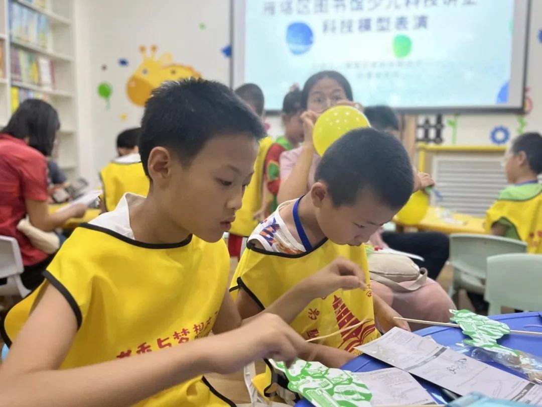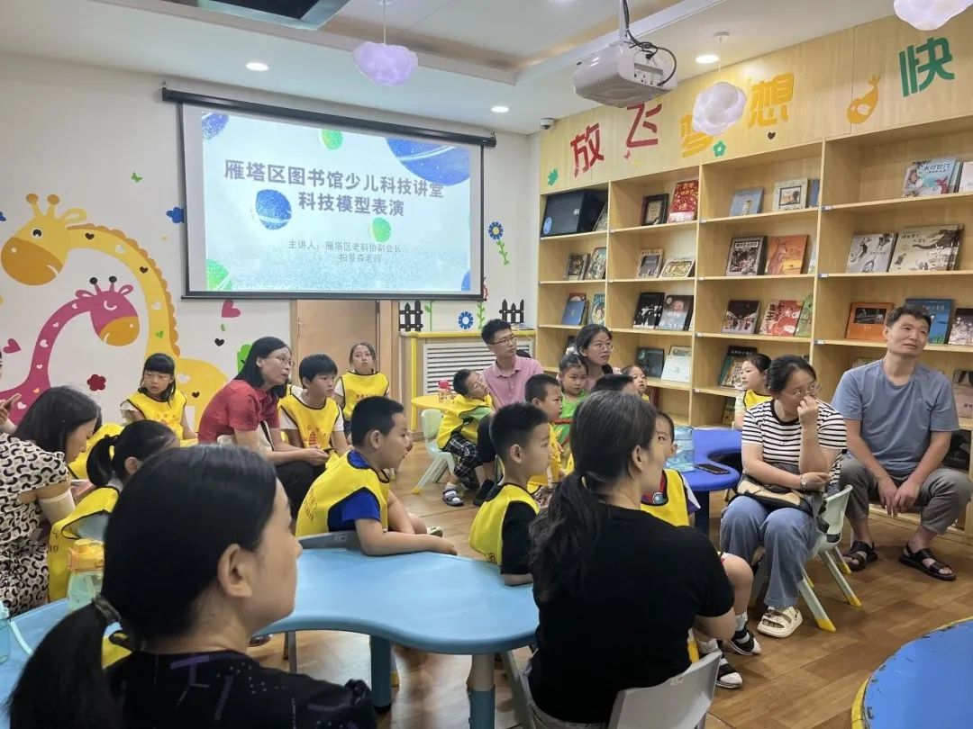 7月15日,雁塔区图书馆少儿科技讲堂在欢声笑语中体验一场科技趣味之旅。此次活动,特邀请西安市雁塔区老科协副会长柏景森老师,以科技发展和科技模型展演为主题,用精彩的短片、模型表演、互动实操、手工制作等形式为孩子们展示科技进步给人类生活带来的便利及乐趣。智能机器人表演、无线电电器制作展示、小鸟扑翼飞行器、无人机操控飞行,随着老师提出的一个个有趣又贴合孩子生活经验的问题,现场小读者们互动不断,积极跟随老师的引导思考和回答,在惊叹、趣味、发现中收获满满。课程临近尾声,小朋友用气球、木棍、橡皮筋等简易工具制作属于自己的小小“飞行器”,在一次次放飞尝试中,小朋友们脸上洋溢着喜悦与兴奋,“我的无人机飞起来啦”小朋友们激动地喊道。也有家长表示:“这是我参加过最有意思和最有意义的体验课,不仅仅是孩子包括我们都觉得受益匪浅。”本次科技讲堂将科学技术的种子深深埋进孩子们的心里。启发孩子们细心观察生活中的万事万物, 发挥自己的创造力和想象力,让孩子们多想、敢想、会想,勇于动手尝试把想法变成现实,从而更好的激发培育少儿读者的科学兴趣和创新精神!