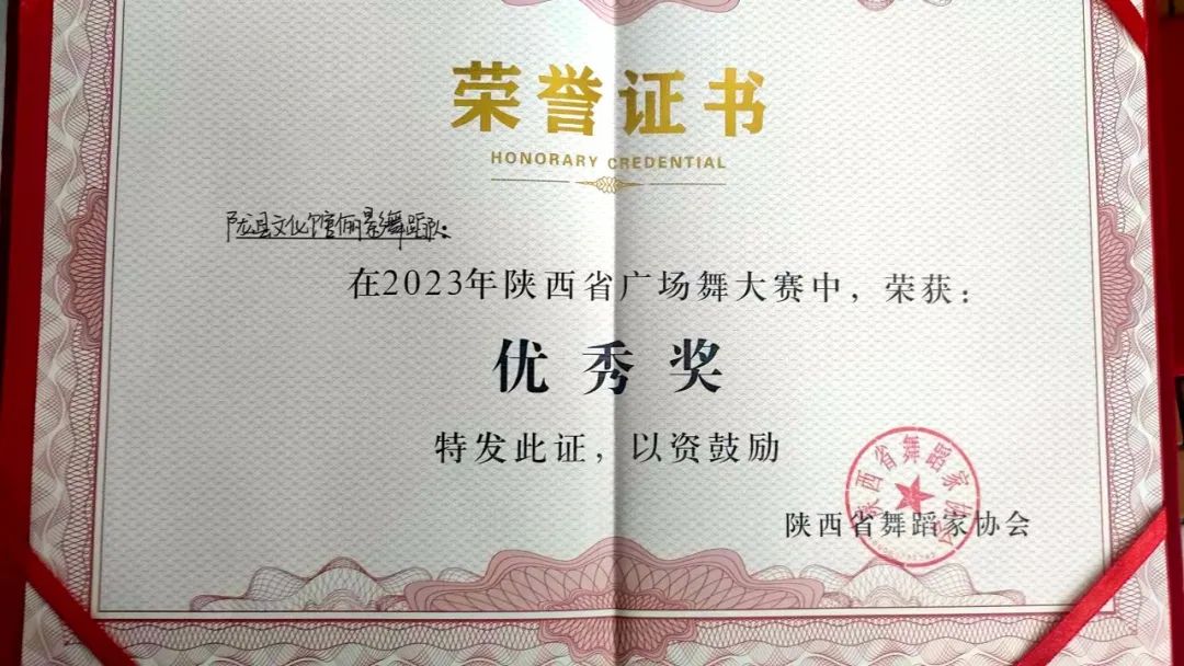来自全省35支广场舞队伍参加比赛,经过层层选拔,来自宝鸡、铜川、咸阳等地市的13支代表队进行了激烈的决赛角逐,由陇县文化馆报送的《中国社火》荣获本次广场舞大赛优秀奖(组织奖)。