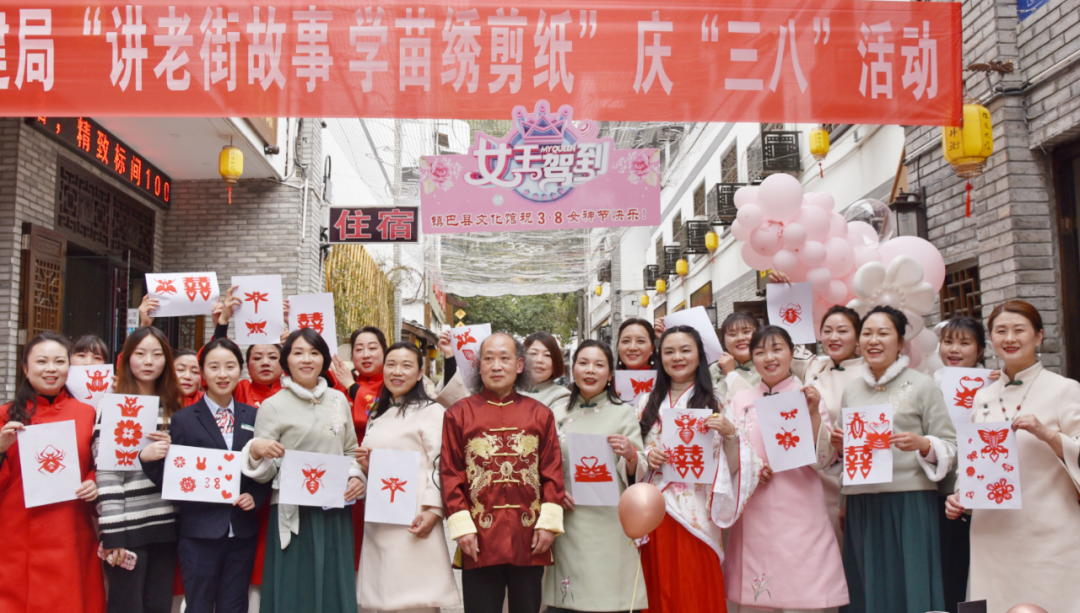 阳春三月,人面桃花相映红!为全面丰富干部职工的精神文化生活,进一步传承推广镇巴“非遗”、民俗特色文化。3月7日,在“三八”国际妇女节来临之际,县住建局、县文化馆在“班城记忆”老街开展以“讲老街故事 学苗绣剪纸”为主题的庆“三八”系列文化活动。为大家讲述老街故事、人文历史、风貌打造、商贸业态、传统小吃等。一件件苗绣刺品在传承人的指导下变得出神入化,一针一线惟妙惟肖;绣着荷包、纳着鞋垫、唱着镇巴民歌,将“非遗”文化融入到了我们的生活里,也唱出了巴山儿女的奋斗历程;一幅幅剪纸作品在大家的手中变的栩栩如生;伴随着悠扬的歌声,品尝着镇巴名特小吃,女同胞们现场展示了镇巴绿茶的冲泡技艺,品茶汤甘醇、听茶乡故事;在热闹纷呈的活动里,“投壶”游戏将大家带入了整场活动的高潮,作为中华民族传承上千年的投掷游戏,不仅有趣,还传承着历史。一颗红心跟党走,砥砺奋进志不移。活动在《歌唱祖国》的歌声中渐渐落下帷幕,一起唱响全民齐奋进、卓越创辉煌的新期待。