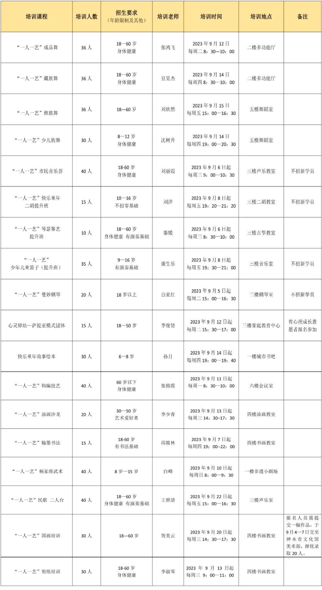 神木市文化馆2023年秋季“一人一艺”全民艺术普及项目即将启动,