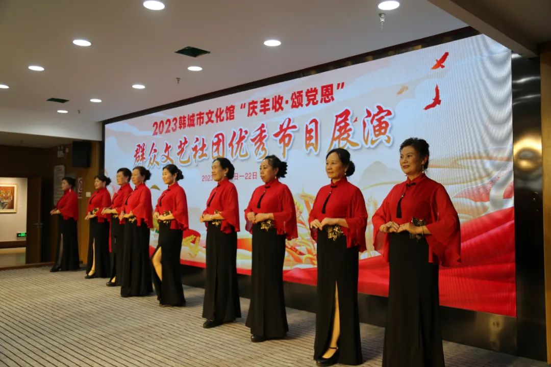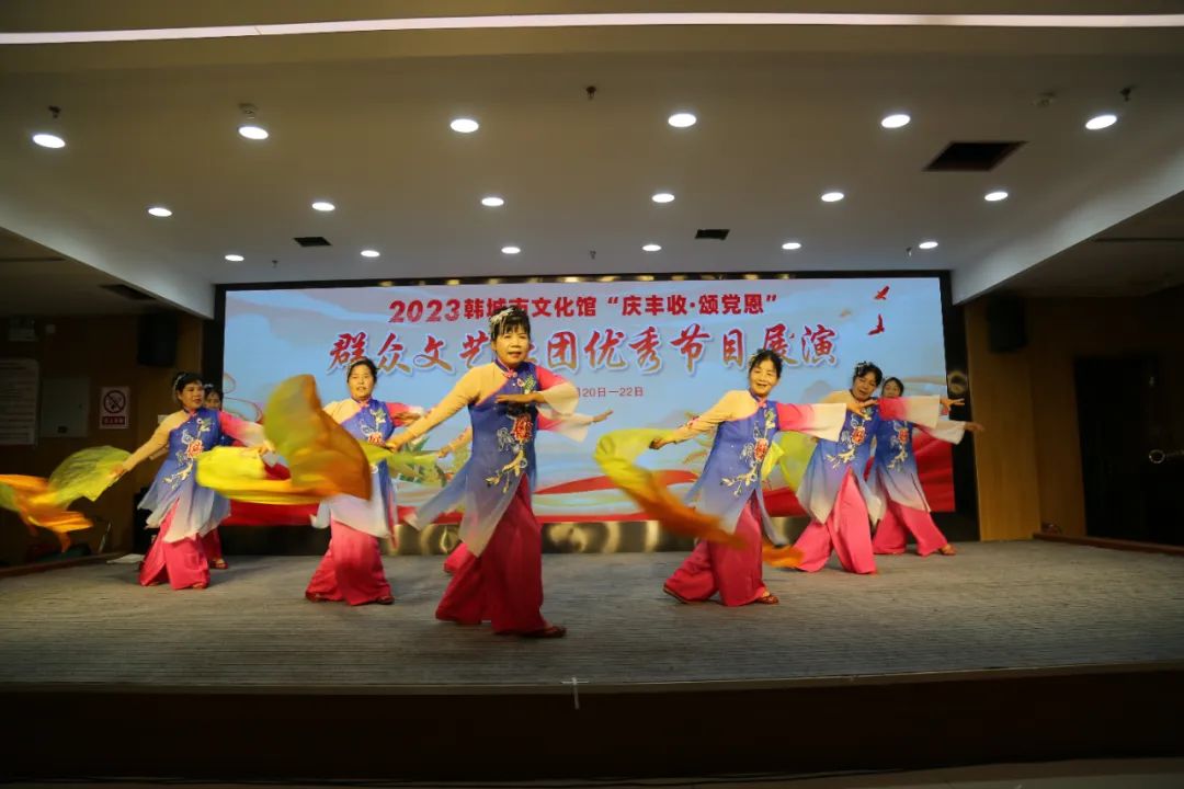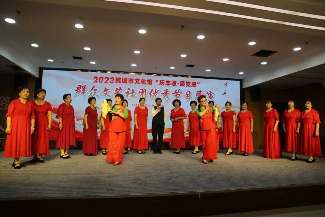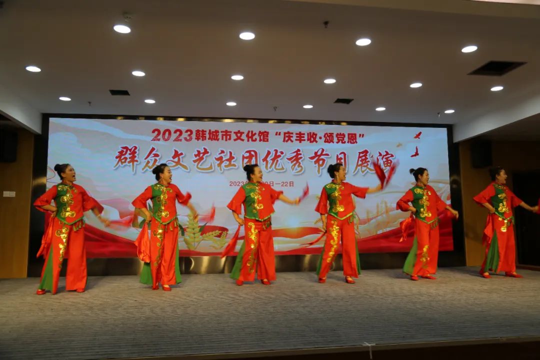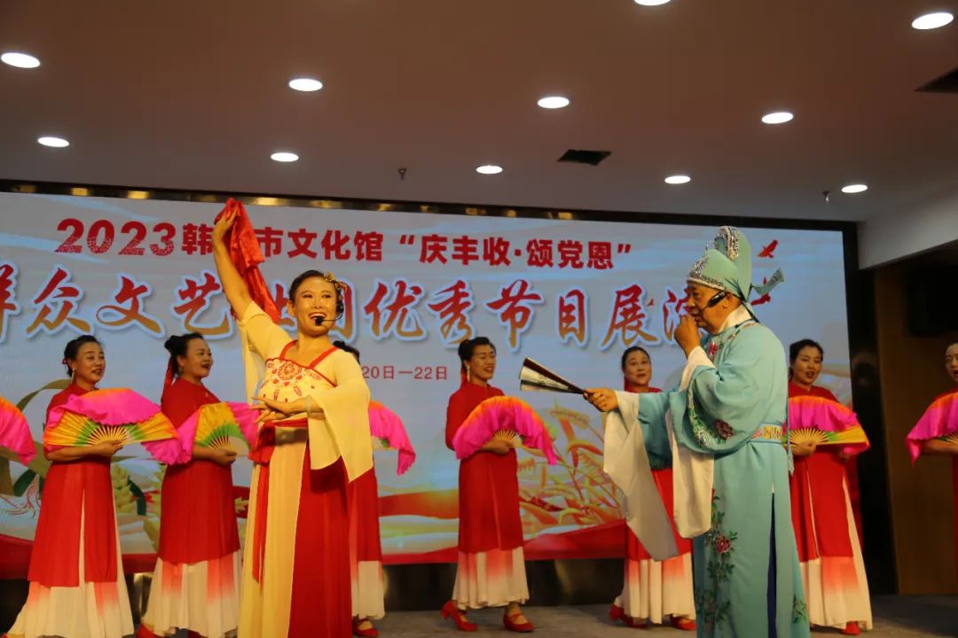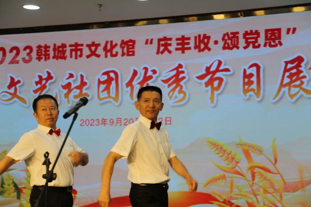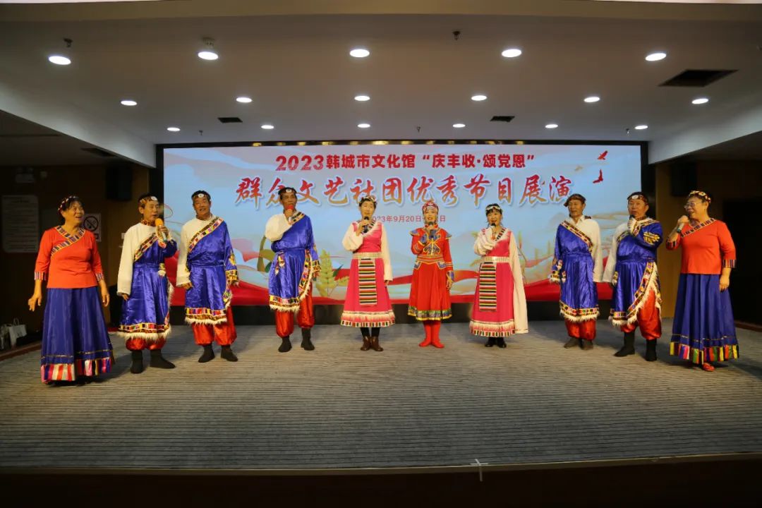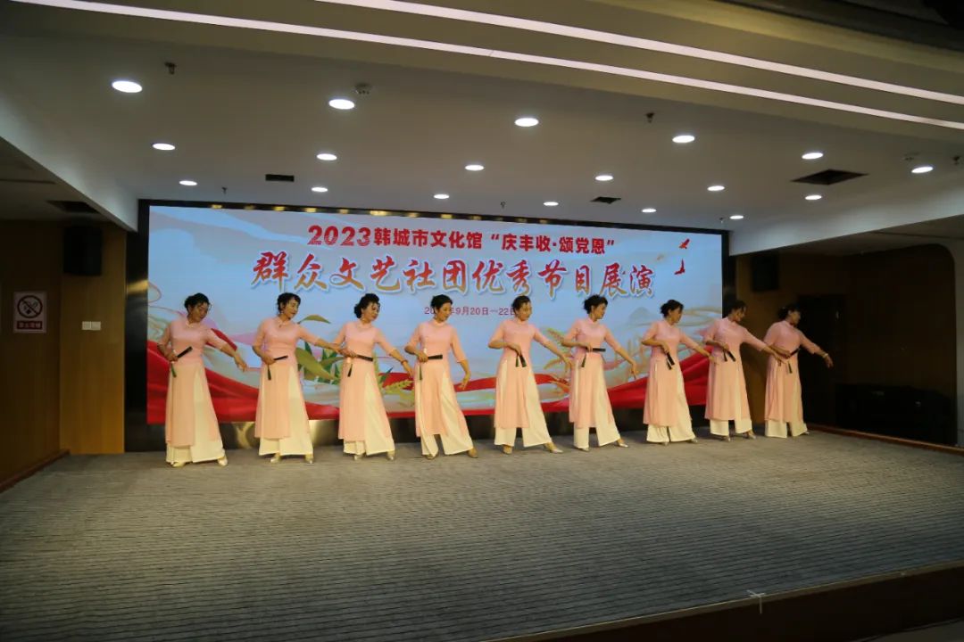 为繁荣基层群众文化建设,积极融入我省构建“优势互补、互为支撑、全面繁荣”的文旅发展新格局,9月20日至22日,2023“庆丰收 颂党恩”韩城市群众文艺社团优秀节目展演活动在我馆多功能厅举办,18支文艺社团热情参与,节目精彩纷呈。