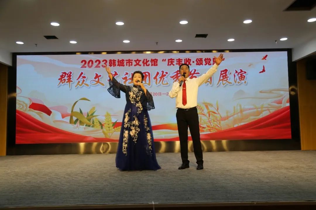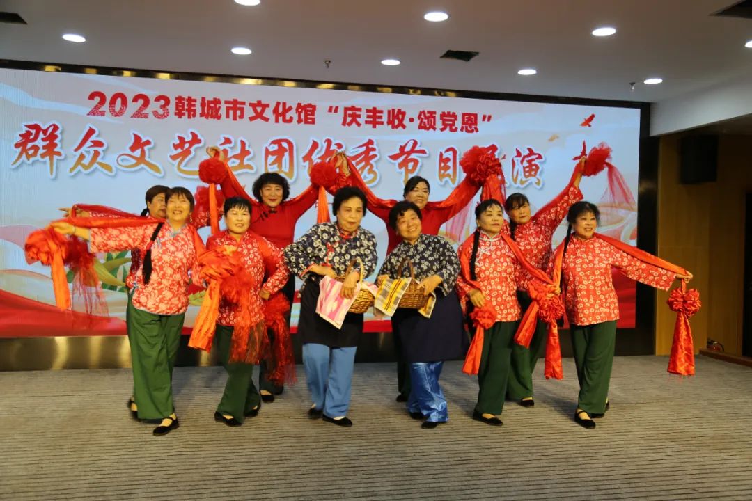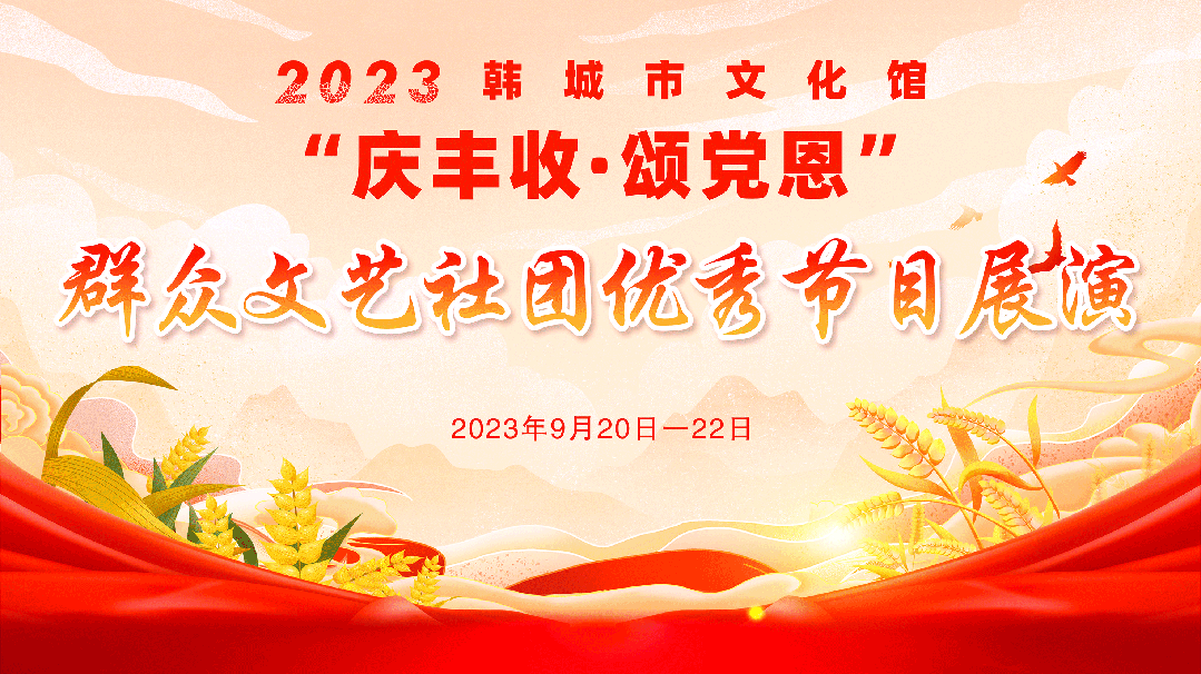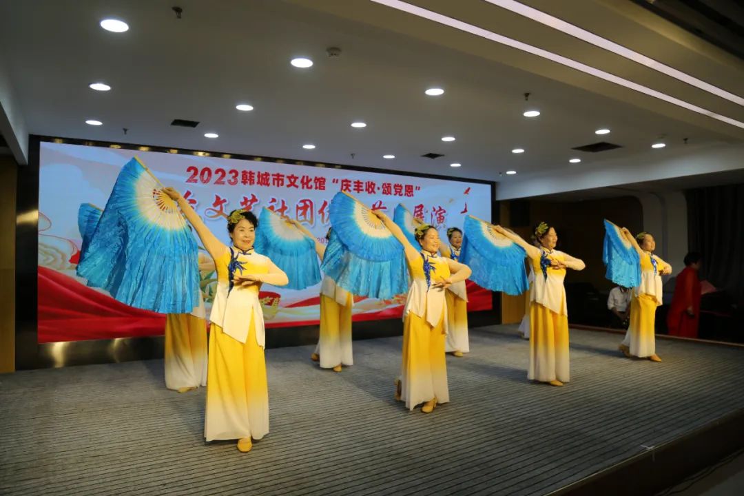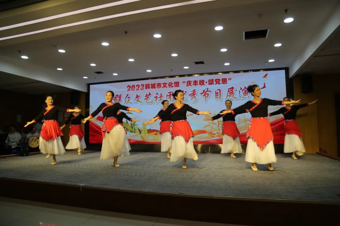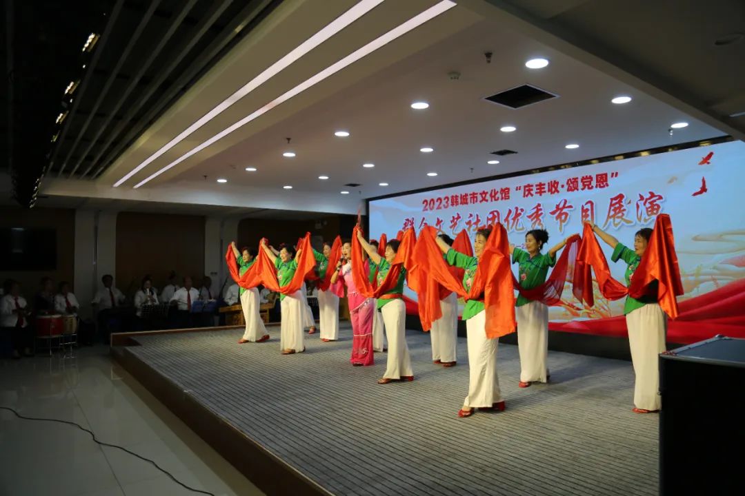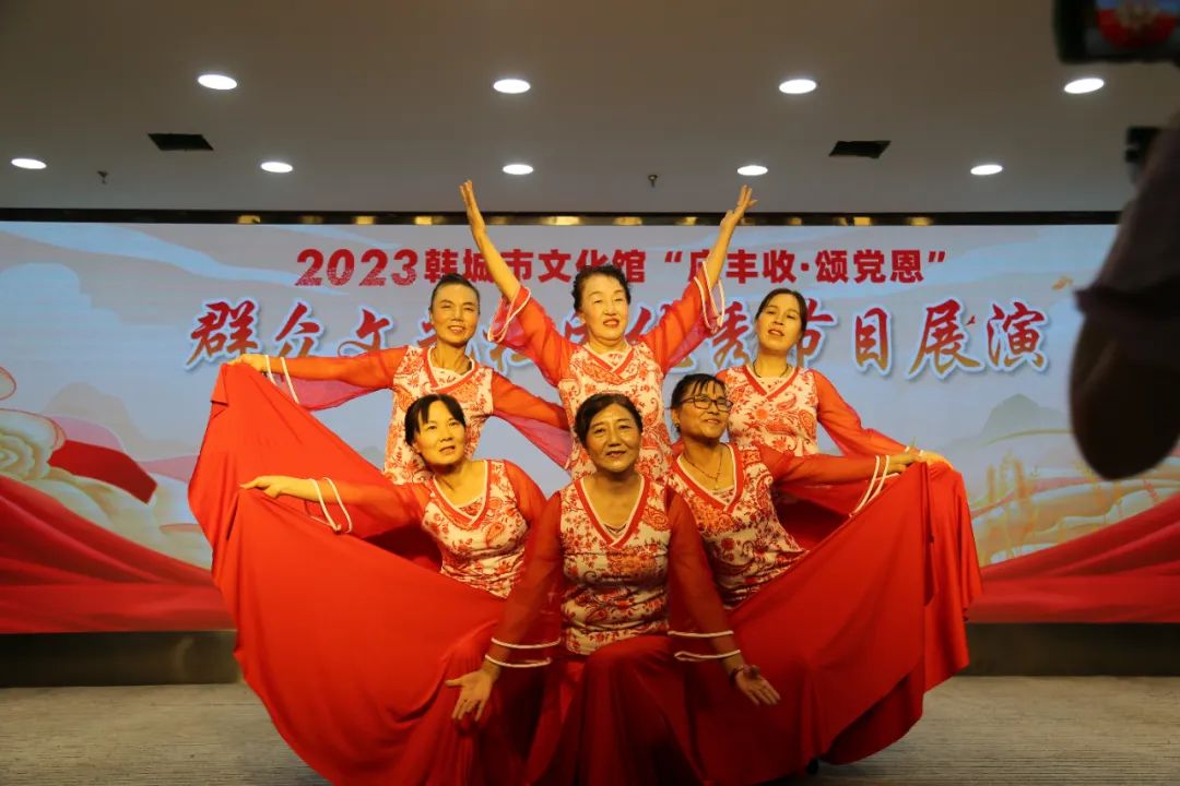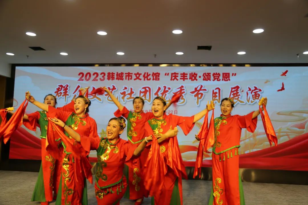 为繁荣基层群众文化建设,积极融入我省构建“优势互补、互为支撑、全面繁荣”的文旅发展新格局,9月20日至22日,2023“庆丰收 颂党恩”韩城市群众文艺社团优秀节目展演活动在我馆多功能厅举办,18支文艺社团热情参与,节目精彩纷呈。