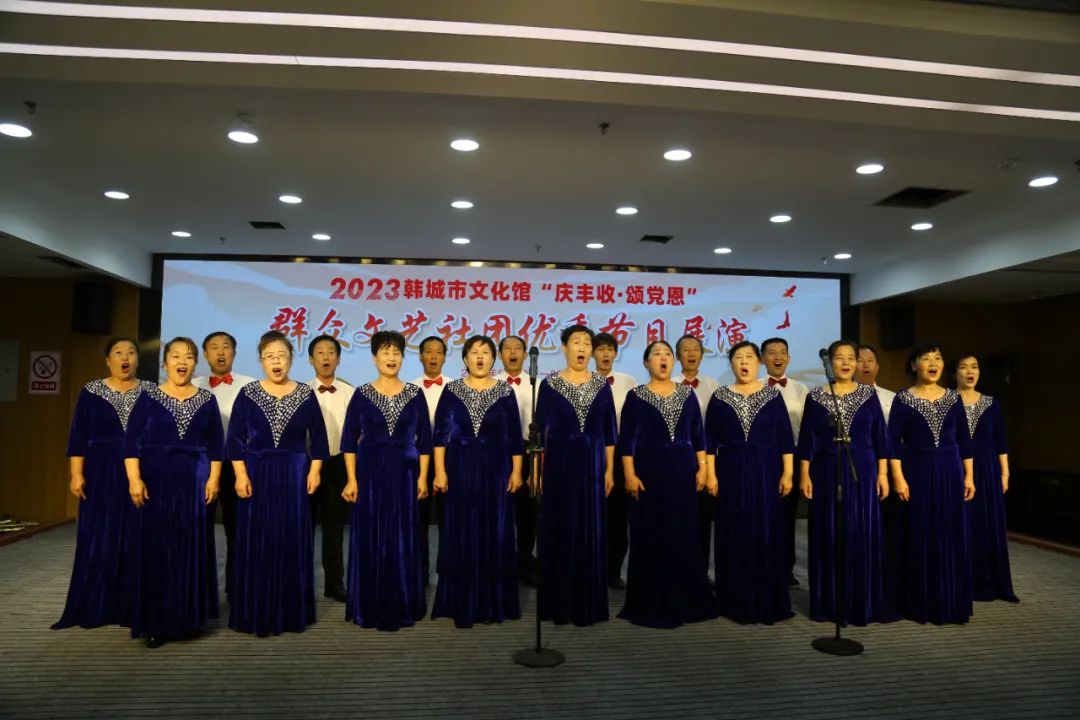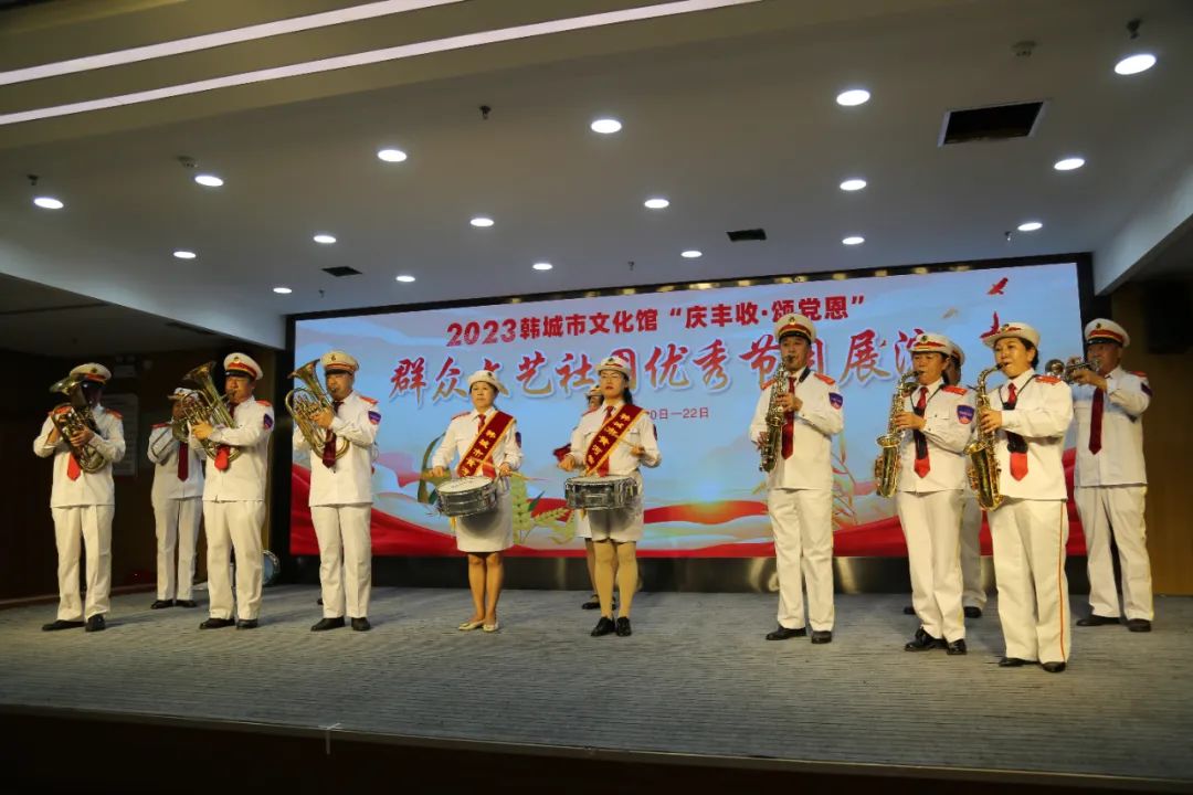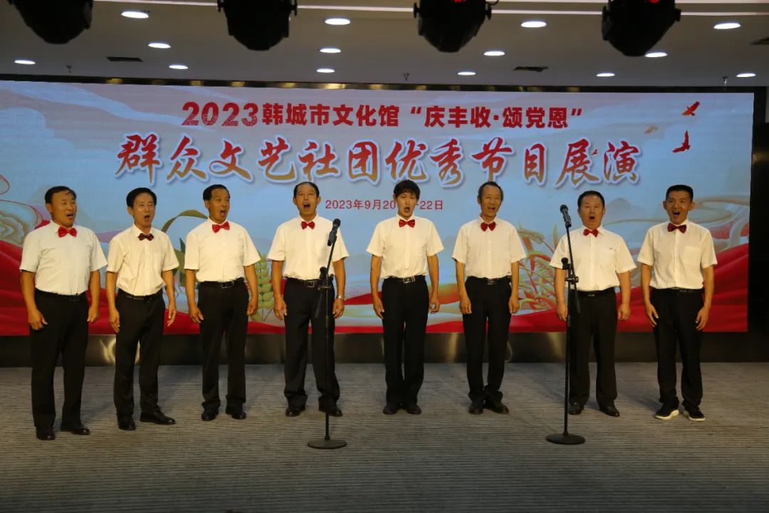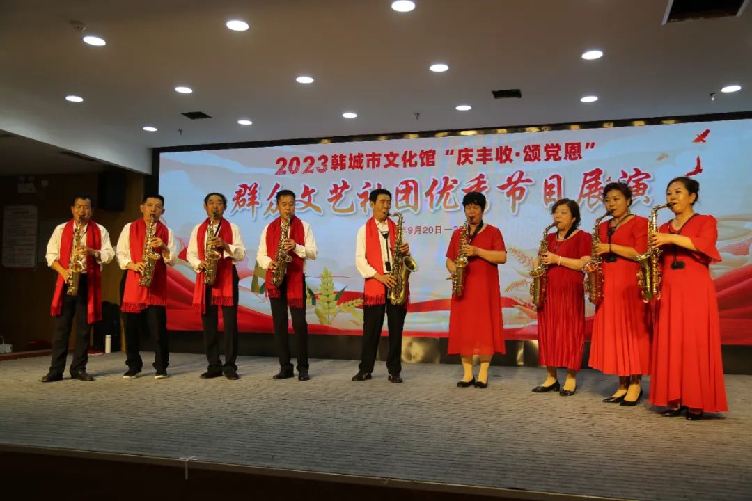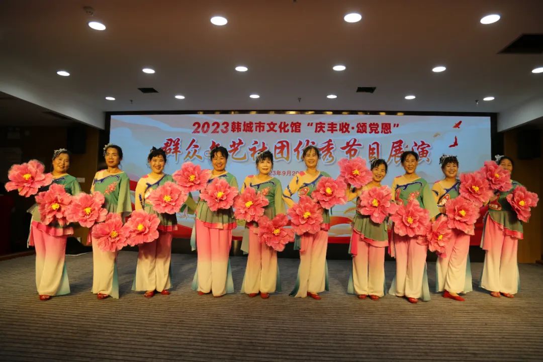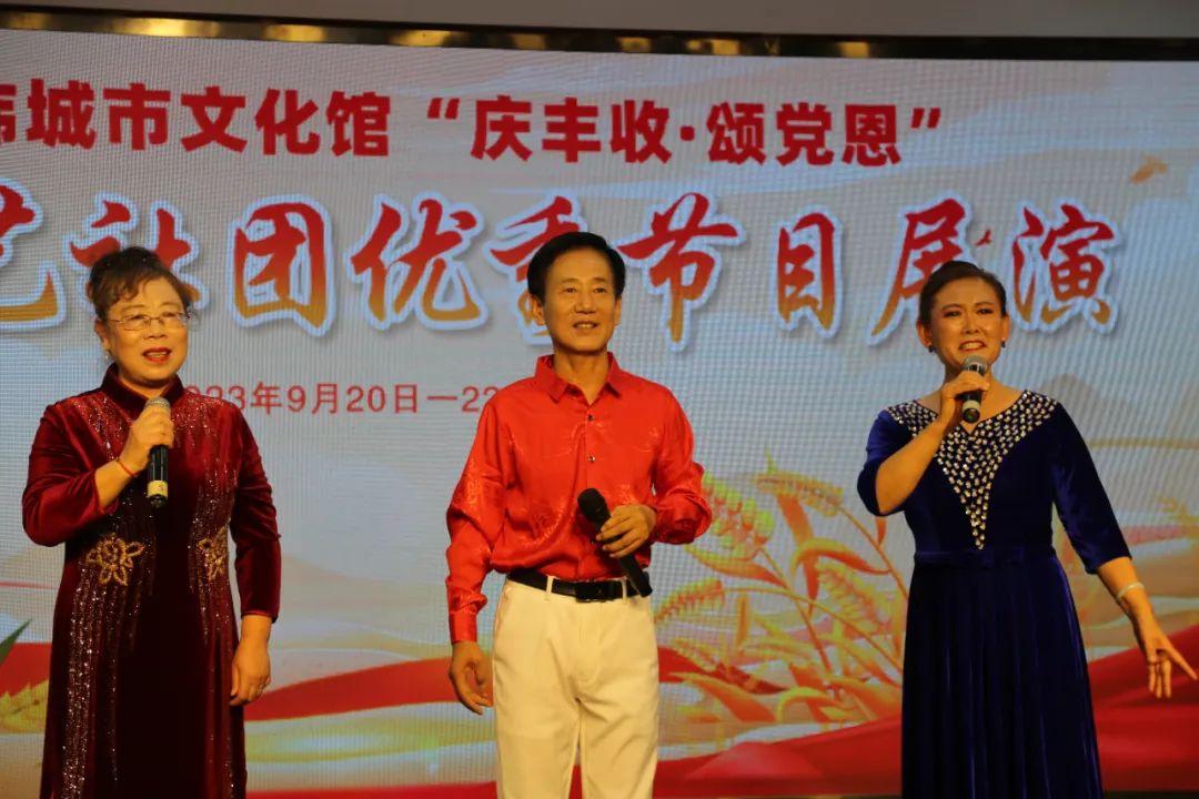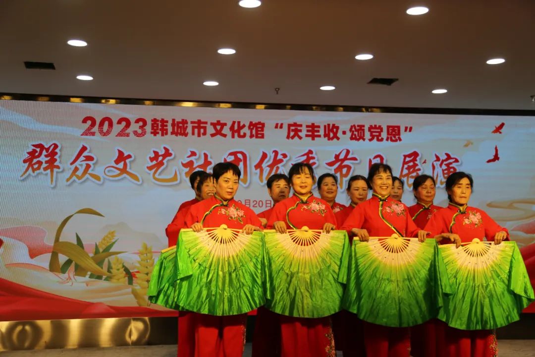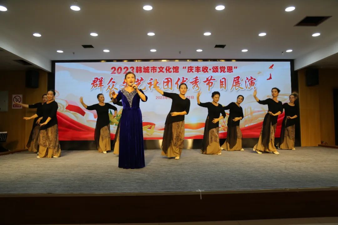 为繁荣基层群众文化建设,积极融入我省构建“优势互补、互为支撑、全面繁荣”的文旅发展新格局,9月20日至22日,2023“庆丰收 颂党恩”韩城市群众文艺社团优秀节目展演活动在我馆多功能厅举办,18支文艺社团热情参与,节目精彩纷呈。