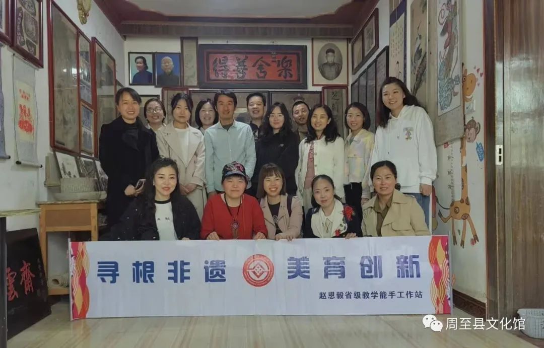 6月1日下午,赵恩毅省级教学能手工作站将印有“情系非遗传承、心怀教育发展”的锦旗,专程送到县文化馆、县非物质文化遗产保护中心,周至县文化馆副馆长赵轶及非遗部工作人员接受赠送。 日前,赵恩毅省级教学能手工作站先后在县非遗展厅、周至剪纸路晓春传习所、周至剪纸郗智勇传习所开展传统美术研学活动,并取得预期效果。后续活动将陆续开展。