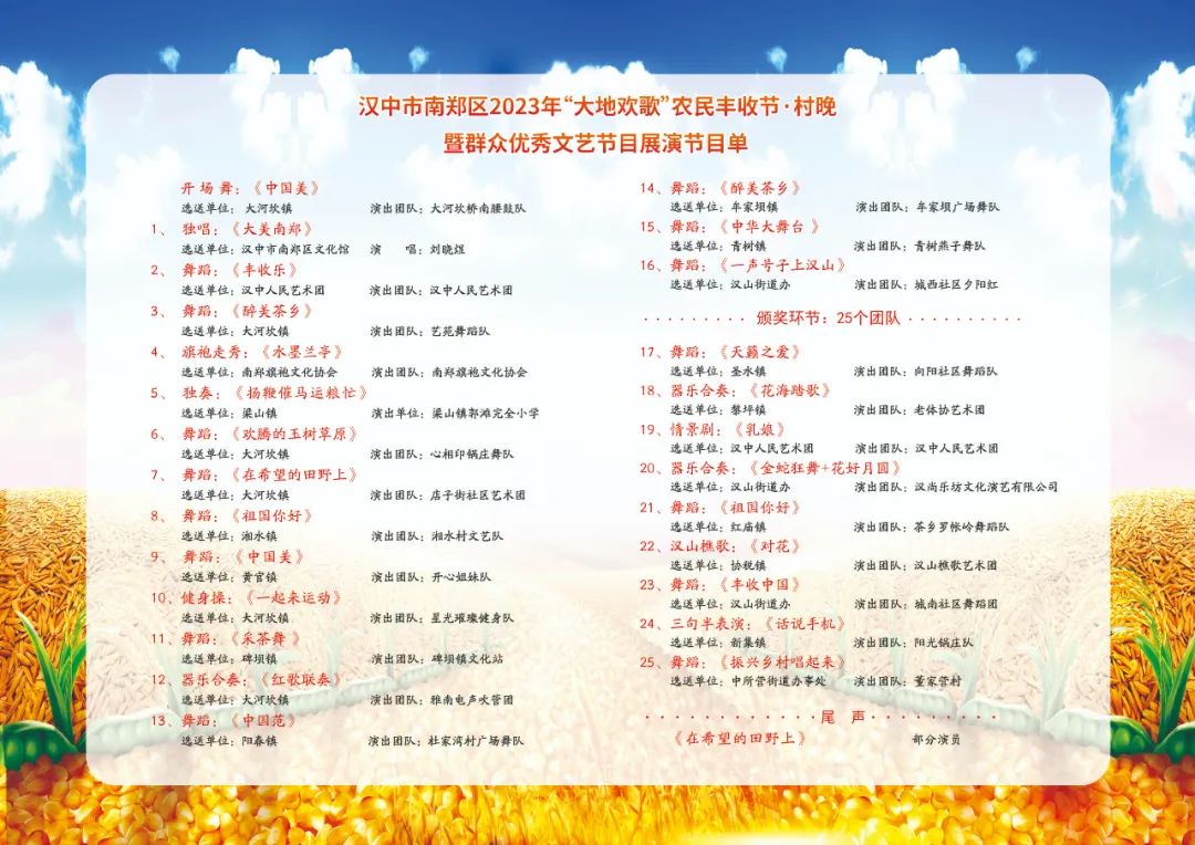 邀请观看 汉中市南郑区2023年“大地欢歌”农民丰收节·村晚暨群众优秀文艺节目展演
