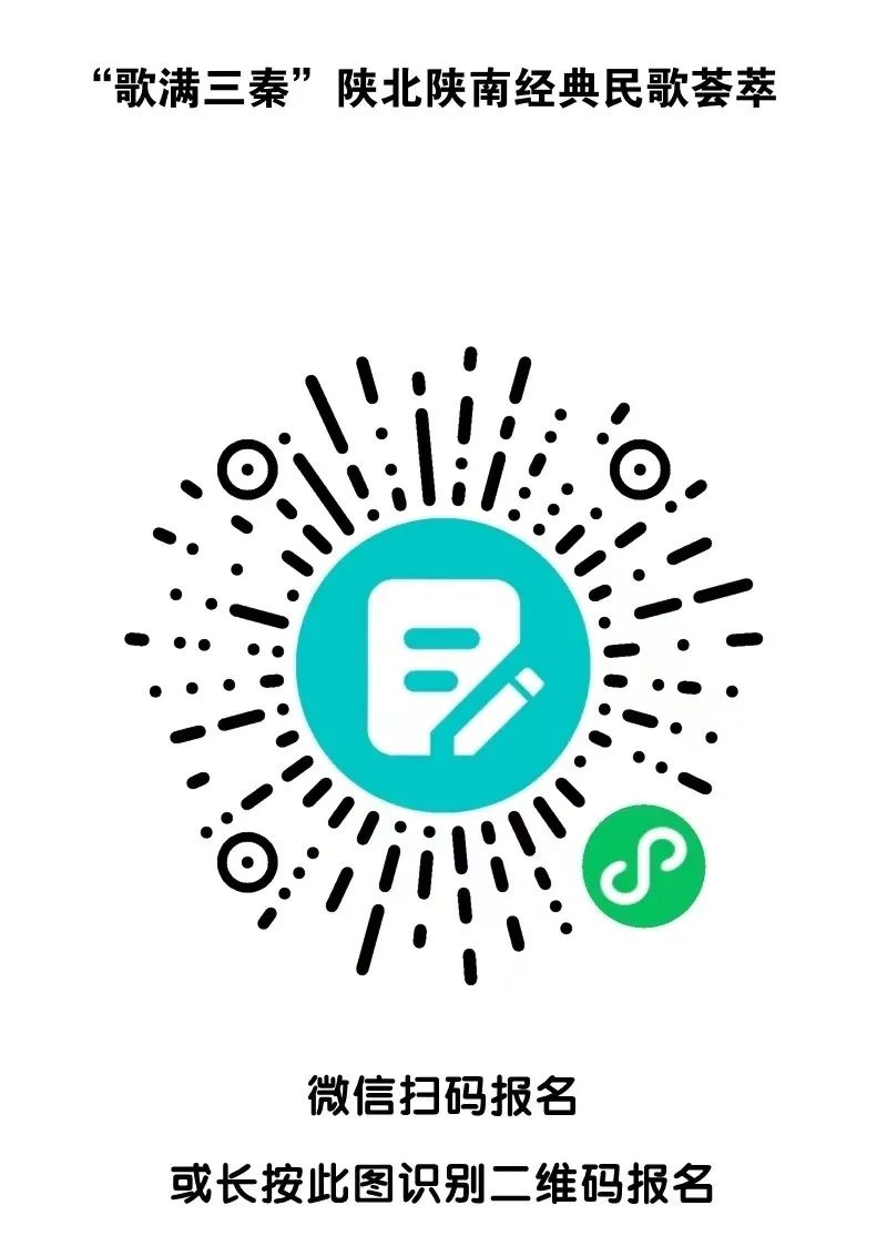 ♪ 节目单 ♫ 民歌荟萃 1.陕北民歌《山丹丹开花红艳艳》 演唱者:陈静 2.陕南民歌《巴山酒歌》 演唱者:彭忠波 周正凯 3.陕北民歌《摇三摆》 演唱者:赵杰 4.陕南民歌《草帽子来满天飞》 演唱者:李娜 5.陕北民歌《小桃红》 演唱者:折鹏飞 6.陕南民歌《兰草花》 演唱者:屈秀萍 7.陕北民歌《来了来了》 演唱者:张小凤 8.陕南民歌《送饭调》 演唱者:彭忠波 9.陕北民歌《五哥放羊》 演唱者:赵鑫 10.陕北民歌《挂红灯》 演唱者:张瑞兵 陈静 11.陕南民歌《郎在对门唱山歌》 演唱者:金苗苗 黄杰 12.陕北民歌《荷包情缘》 演唱者:折鹏飞 张小凤 ♪ 报名方式 ♫ 第一步:识别下方二维码,点击下方【报名工具】,进入报名程序。 第二步:往下滑动页面至最下端。填写报名信息,点击下方”立即报名“。 第三步:填写完成并收到报名成功通知即视为报名成功,本次活动限额150人,先到先得,报满即止。 ♪ 期待您的到来 ♫ 本场活动传唱经典的陕北、陕南民歌,让现场观众沉醉其中。热烈欢快的陕北民歌与细腻婉转的陕南民歌,反映出陕西人民乐观豁达的生活态度和三秦大地的新面貌、新发展。活动旨在进一步提升公共文化服务品质,保障群众基本文化权益,让更多的群众享受民歌艺术,在文化馆服务宣传周期间举办本场活动,可以让更多人进一步了解文化馆、 走进文化馆,提高公共文化机构的公众知晓度、参与度和美誉度。