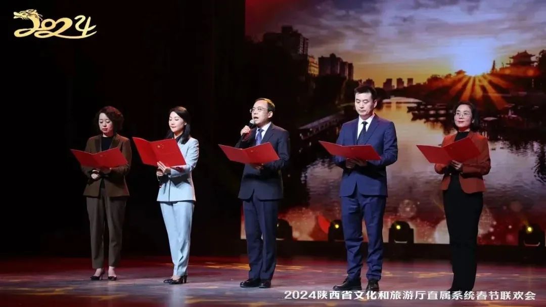 辞旧岁玉兔春毫描锦绣,迎新春金龙翰墨绘华章。2月1日,由陕西省文化和旅游厅主办,厅机关党委、厅机关工会和陕西省文化馆共同承办的“龘龙腾盛世 幸福中国年”2024陕西省文化和旅游厅直属系统春节联欢会在省文化馆曲江馆区成功举办。