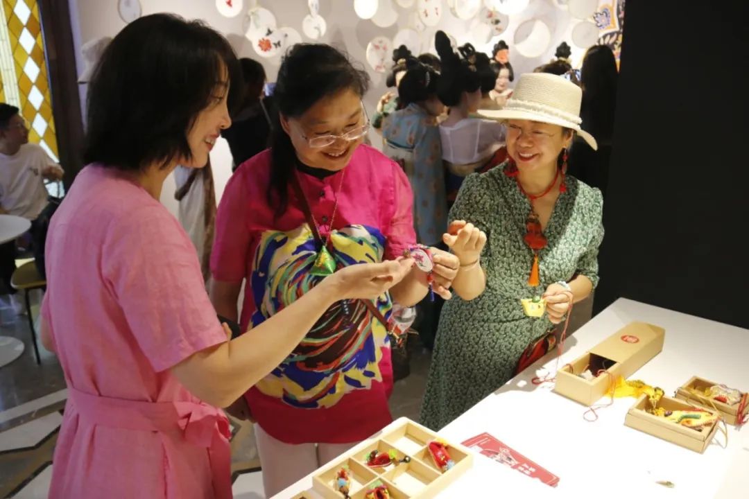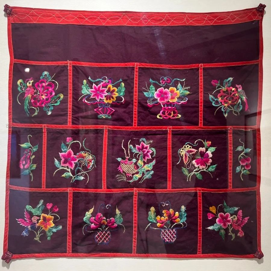 活动现场,从精致的云肩、华美的衣裙到细腻的抹额、闪耀的首饰,乃至日常的门帘与信插,各种刺绣作品错落有致地陈列,它们色彩热烈而鲜明,图案朴素且充满活力,展现出一种既原始纯粹又不失现代审美情趣的美学风格。每一件似乎都在生动地诉说着关中刺绣的历史,承载着民族的记忆,同时又以一种开放的姿态,展现出一种跨时代的艺术生命力。吸引了众多观者驻足欣赏,沉浸在传统与现代交织的艺术氛围中。西安市群众艺术馆(西安市非遗保护中心)始终秉持“守正创新”的发展理念,致力于探索非遗保护与利用的新模式,通过本次展览,不仅展现了非遗刺绣的精湛技艺,更是在寻找传统文化与现代生活的交点,激活手工艺者的创造力,为乡村振兴与文化传承贡献坚实力量。展览期间,还进行了技艺演示及互动体验活动,旨在搭建一个开放共享的平台,让更多人参与到非遗保护与传承中来。