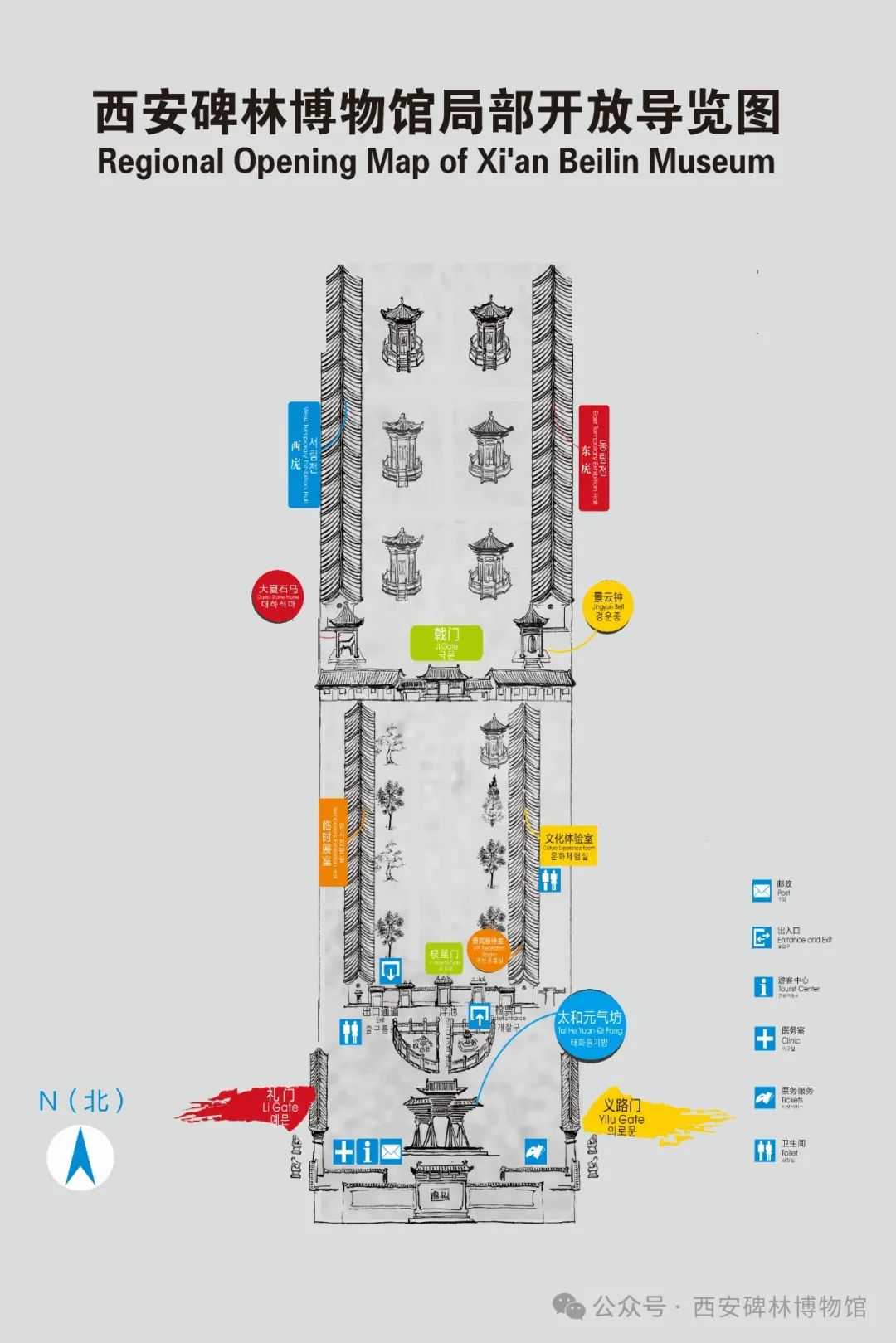 尊敬的观众朋友们: 2024年“端午”假期期间,西安碑林博物馆正常开放,全面执行“线上购票、分时预约、错峰限流”。 如您在游览期间有任何疑问或者需要帮助,请致电咨询电话:029-87253331 开放时间 9:00开馆,17:00停止检票,17:30闭馆。 门票价格 除政策性免票外,门票价格一律10元/人 可参观区域 为配合我馆改扩建工程建设,现局部开放孔庙古建筑群区域,包括照壁、太和元气坊、泮池、棂星门、戟门、华表、碑亭、东西两庑等建筑遗存;戟门内东西两庑南侧的景云钟、大夏石马;棂星门内中轴线东侧的“平庐内外——董作宾的学术世界”展厅,西侧的“石墨镌华——西安碑林名碑拓本展”展厅。 政策性免票人群 1、西安碑林博物馆对现役军人(含军队离退休干部)、残疾人、65周岁以上老年人(含65周岁)、6周岁(含6周岁)以下的儿童,凭军官证(离退休证)、士官证、士兵证、残疾证、居民身份证(或陕西省敬老优待证)实行免票。 2、现役军人本人所携的配偶和18岁以下未成年子女,凭结婚证、户口本等有效证件免票。 3、“三属”人员凭优待证免票。 4、消防救援人员(含离退休),凭有效证件享受现役军人的同等优待政策。 5、三秦优才卡人员持证可享受同行三人免门票政策。 6、院士免票。 预约注意事项 西安碑林博物馆实行身份证实名预约购票,实行分时预约制,请务必按照预约时间段前来参观。 观众须通过官方微信公众号、官方网站和支付宝提前预约购票。凭身份证或购票电子二维码入园参观。 特殊证件人群(军官证、士兵证、消防员证、残疾证等)请前往售票窗口兑换免票。