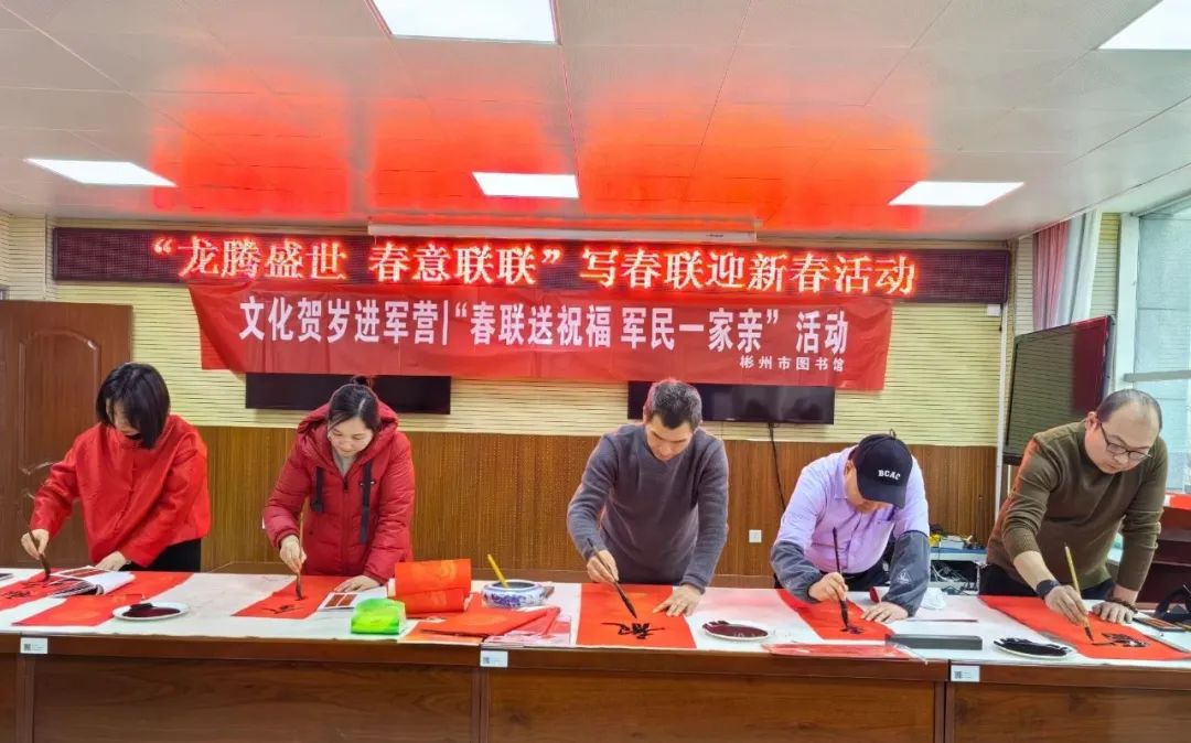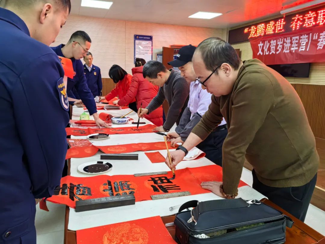 福赠春联祈平安,翰墨飘香传祝福。为弘扬中华民族传统文化,营造喜庆祥和的春节氛围,迎接新春佳节到来。2月5日,彬州市图书馆联合市青年书法协会走进彬州市消防救援大队,开展“春联送祝福 军民一家亲”活动,把对消防官兵的深情厚谊赋予笔端,为消防救援人员送上龙年新春的祝福。