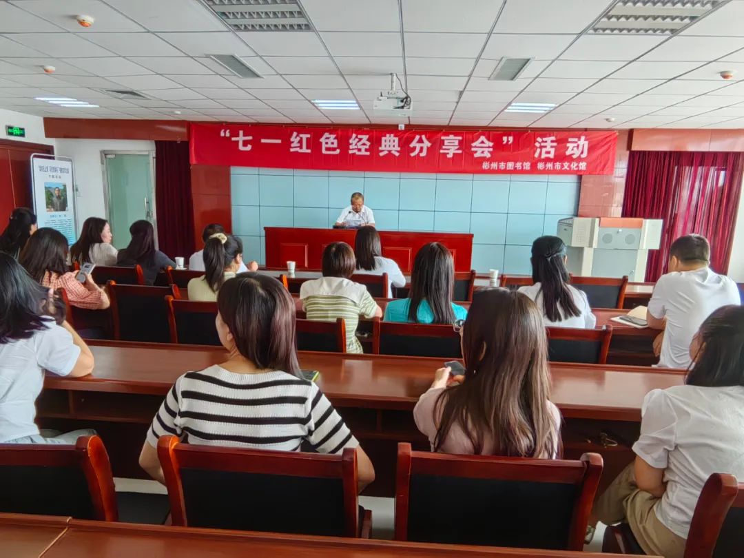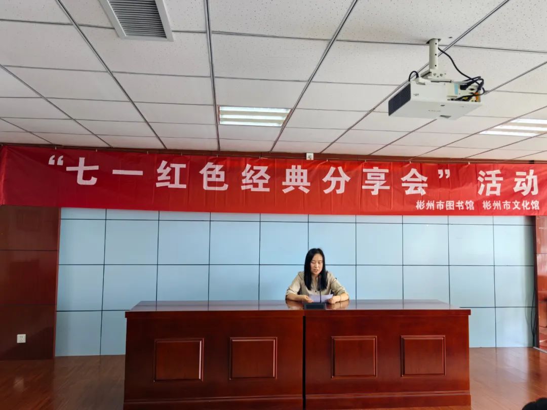 为喜迎“七一”建党节,庆祝中国共产党成立103周年,回顾党的奋斗历史,讴歌党的光辉历程和丰功伟绩,推动“读好书,读红色经典”活动深入开展,推进红色文化建设,传承弘扬革命精神,7月1日,彬州市图书馆联合文化馆举办了“七一红色经典分享会”活动。 现场参加活动的同志紧紧围绕爱国、爱党、革命经典等主题,以饱满的激情、激昂的语言,演绎了一首首红色经典作品,赢得现场阵阵掌声。 图书馆副馆长刘丽分享了红色经典小说《红岩》,告诉我们那一抹红色,是最耀眼的坚守;文化馆副馆长郭爱妮分享了《如果还有明天》,李自立老师分享的原创作品《勿忘初心,求真务实》铿锵有力,王文娟分享的《青春之歌》饱含深情,梁娇艳深情朗诵的《毛主席诗词——采桑子.重阳》表达了革命乐观主义精神,邓敏用感人至深的语言分享了《闪闪的红星》,李婷分享的《老党员传递红色接力棒》给新时代党员们提出了新的要求,亲子组合分角色为我们讲述了《小侦察兵郭滴海》的故事,在这场活动中,大家共同领略了红色经典的魅力。 撰稿:王文娟 审核:刘丽