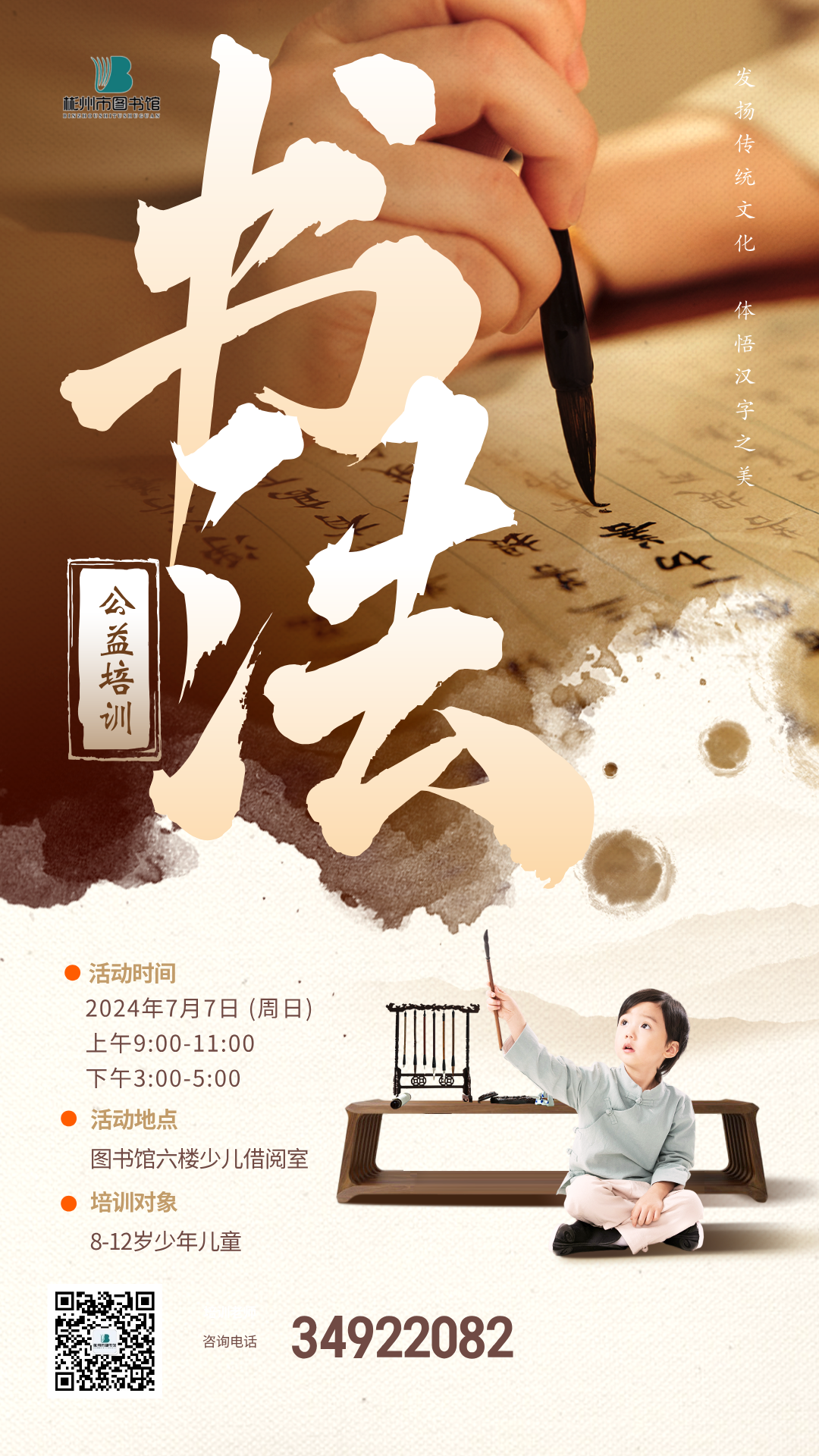 周日开课 | 彬州市图书馆青少年书法公益培训活动报名啦!