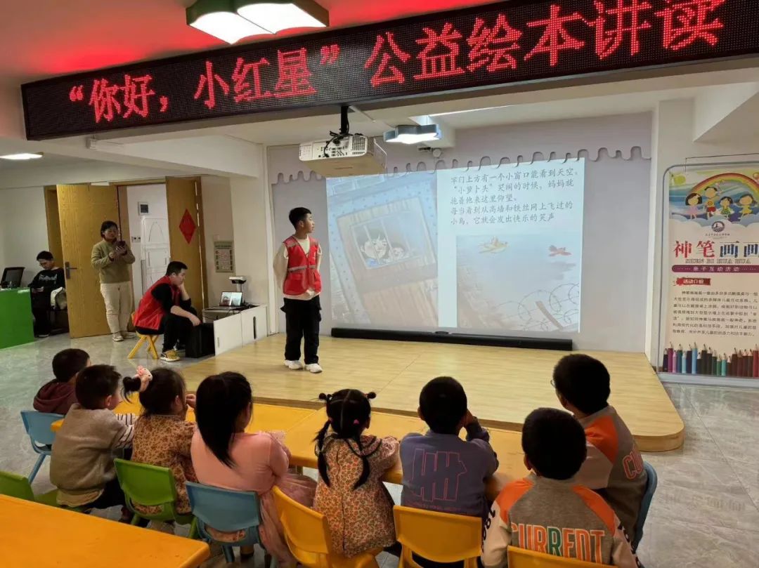 为弘扬延安精神,传承红色基因,此次活动精选五本具有红色革命意义的绘本,通过志愿者们的精彩故事演绎,让讲读不再只停留在文字,更是将红色的光芒照耀进少年儿童的心中。