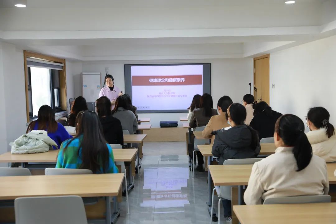 讲座特别邀请到公共卫生执业医生,心理治疗师(中级),美利华健康大学VIP会员,心太阳健康心理专家、延安大学附属医院心身门诊坐诊专家周小燕博士,围绕健康理念、健康素养以及健康生活方式等方面的知识,以通俗易懂的语言、图文并茂的方式深入浅出地向大家阐述了如何吃得更科学、更健康,并为大家展示了最佳的饮食配比,分析了每种推荐食物的优缺点;同时,还讲解了女性常见“两癌”的预防和疫苗接种,建议大家学会进行自我检查,定期进行体检,做到早发现、早诊断、早治疗,并提醒现场的女性平时要加强锻炼、强健体魄,养成良好的生活习惯,以健康的身心投入到工作和生活中。