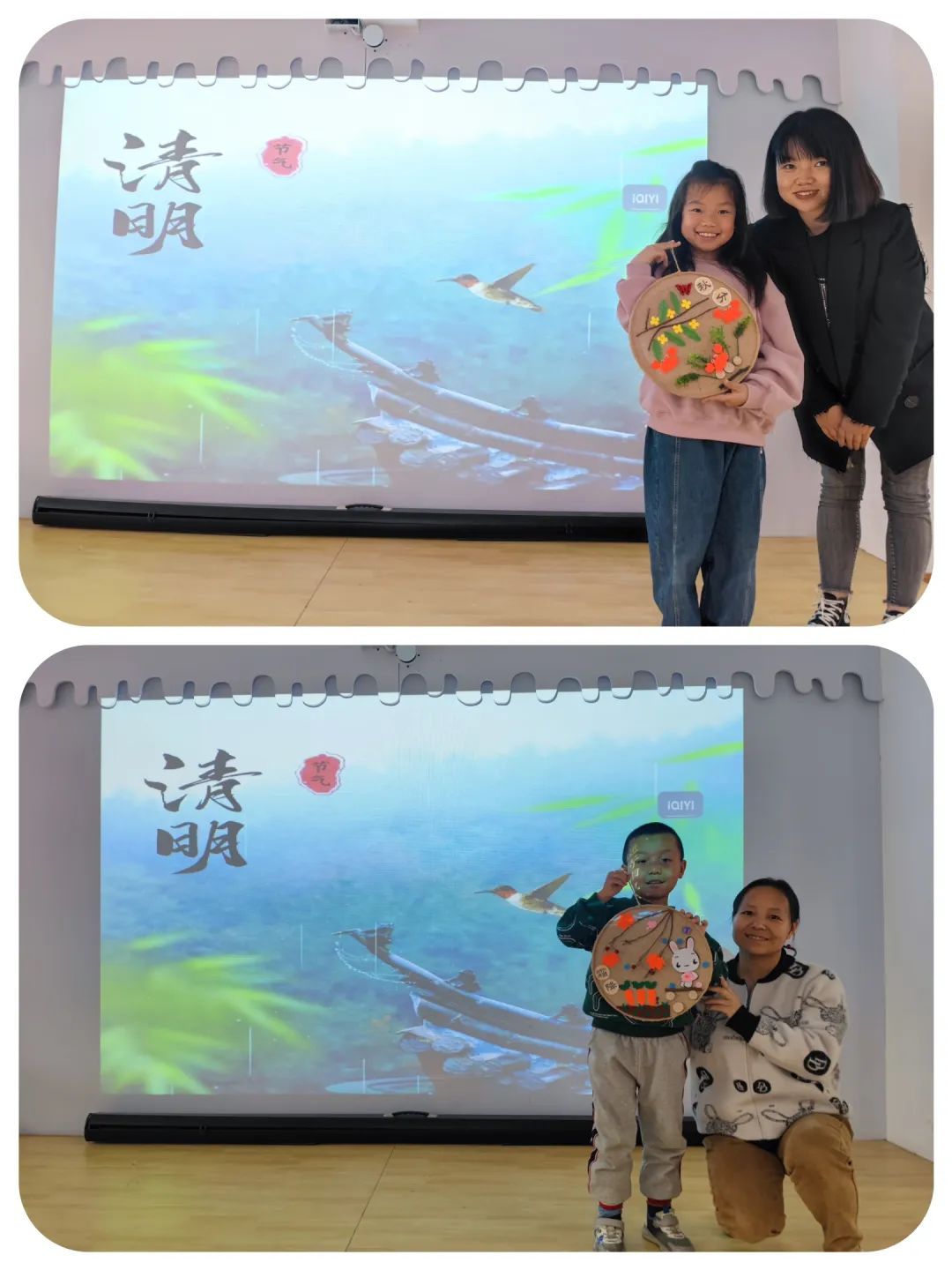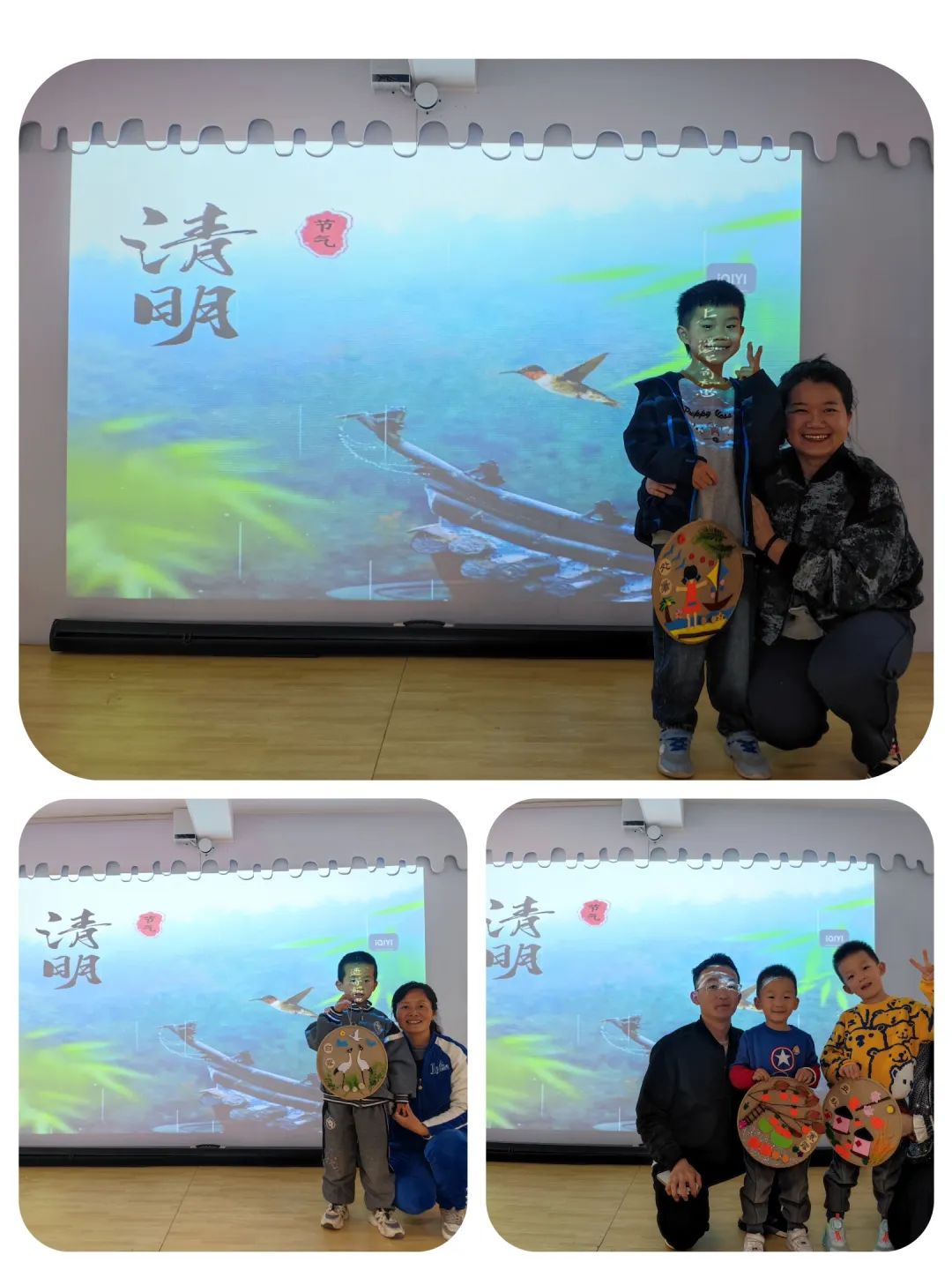活动在生动直观的视频学习中拉开帷幕,小朋友们从“缅怀先烈”、“扫墓祭祖”、“认知习俗”等方面,对清明节有了初步的认知。随后,在老师的指导下,小朋友们用稚嫩的童声朗读了关于清明节的古诗词。接着,开始了小朋友们最喜欢的手工制作环节,在家长的帮助下,小朋友们积极动手,纷纷做出属于自己的“节气”作品;最后,大家带着做好的手工作品合影留念。