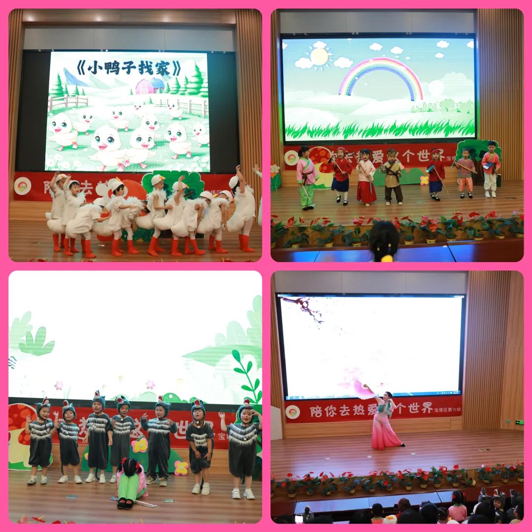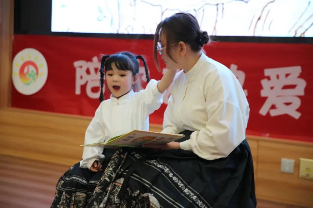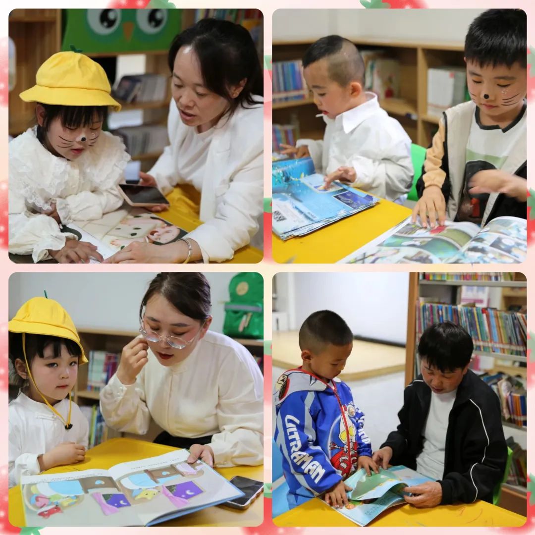 活动中,小朋友们在志愿者的带领下参观了图书馆,了解各部室的服务职能,在此开启了一场充满书香和童趣的探索之旅;随后,幼儿园的师生表演了舞蹈《桃花红杏花白》、情景剧《狼来了》《小鸭子找家》,以及绘本故事讲读《猜猜我有所爱你》《阿宝国王和他的城堡》等节目,小朋友们手拉手一起排排站,韵律十足地舞动着自己的小小身体,用稚嫩的童音绘声绘色地演绎着故事情节,引起了现场家长、老师们的阵阵掌声;最后,在图书馆工作人员的引导下,小朋友们畅游书海,在图书馆浓浓的阅读氛围中,与大朋友们尽情地享受了欢快的亲子共读时光。