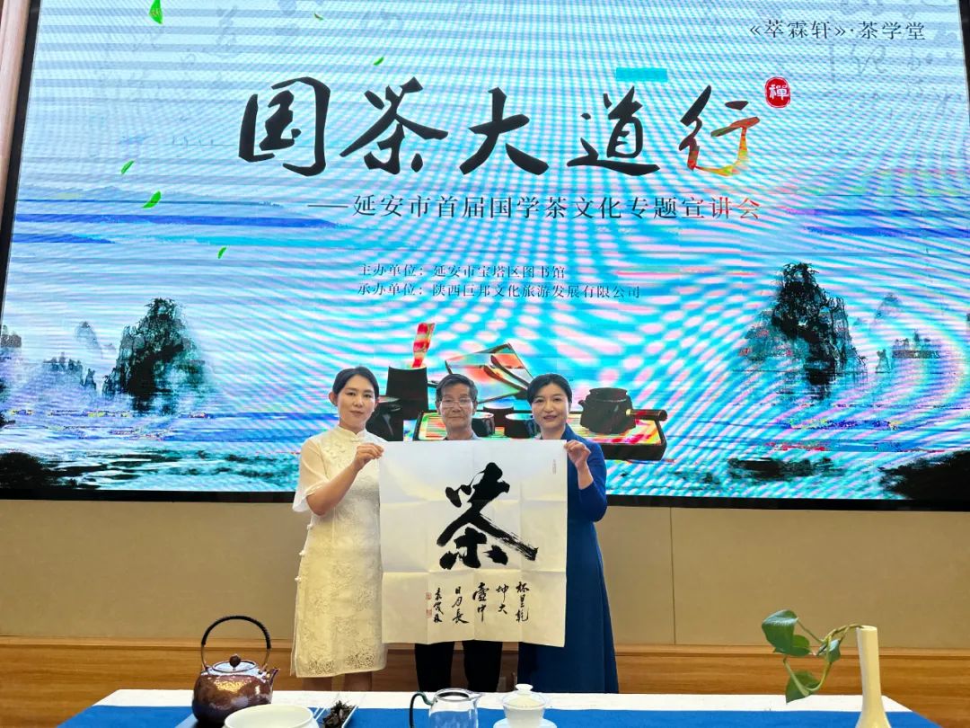 收费信息:免费 千年茶文化,今朝共传扬。为进一步倡导全民阅读,弘扬茶道文化,带领读者朋友沉浸式体验中国茶文化的深远魅力。5月30日下午,由宝塔区图书馆主办,陕西巨邦文化旅游发展有限公司承办的“国茶大道行”——延安市首届国学茶文化专题宣讲会在图书馆报告厅举办。活动现场特别邀请到国家一级茶艺师、国家一级评茶师,《萃霖轩》茶学堂创始人许莉老师为大家专题讲授茶学文化。 此次宣讲会由图书馆党支部书记、副馆长马星星主持,延安市各界文化名人,茶文化爱好者共计100余人,齐聚一堂,共同探讨茶道,交流茶艺,传承文化艺术。 首先,著名文化学者、作家、书法家袁茂林老师分享“国学与茶”,带大家探索国学与茶文化的交融之美。 接着,著名音乐人、作曲家、陕北民歌声乐教学创作演唱专家耿志杰老师分享茶文化与艺术之间的渊源,用音乐为本场活动增添了独特的艺术氛围,为这场国学茶文化宣讲会画上了圆满的“句号”。