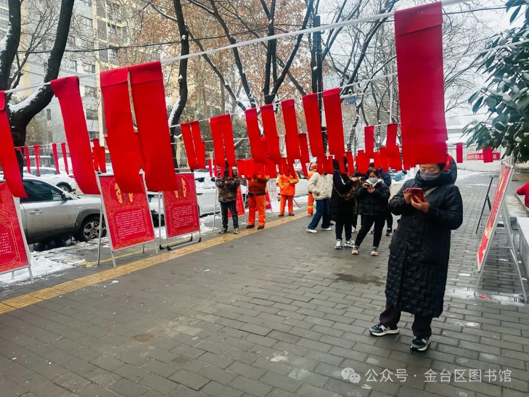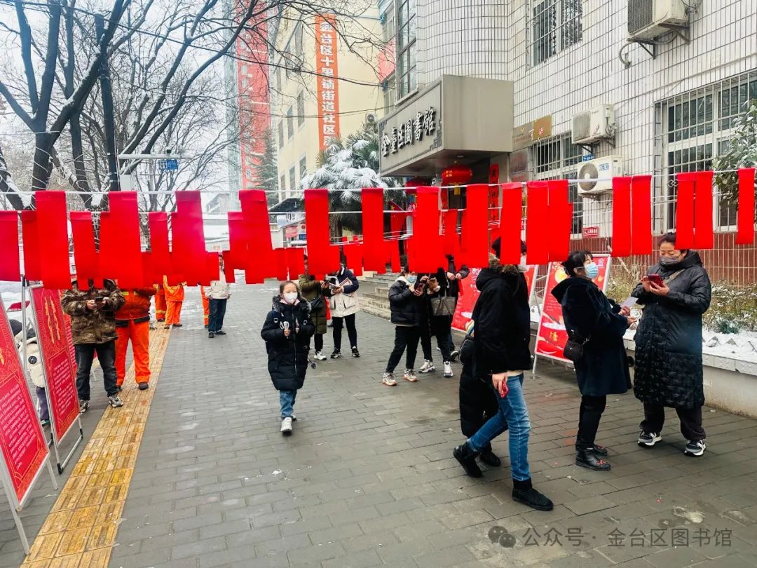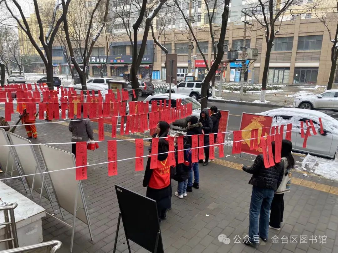 在元宵佳节到来之际,为丰富广大市民的文化生活,营造中华传统文化节日氛围,展现读者风采,2月23日(正月十四)下午,金台区图书馆开展 在图书馆楼外挂满了灯谜,下午两点半活动开始,市民陆陆续续来到了这里翻看谜面,大家积极参与到活动中来。 活动现场精心布置了灯谜300条,大家在灯谜中流连忘返,在寓教于乐的活动中感受着传统文化带来的魅力。 闹元宵 猜灯谜 图书馆楼外营造出浓厚欢乐的节日氛围,读者兴致勃勃的参与其中,内容丰富的灯谜有趣而通俗。 猜 灯 谜 2024元宵节