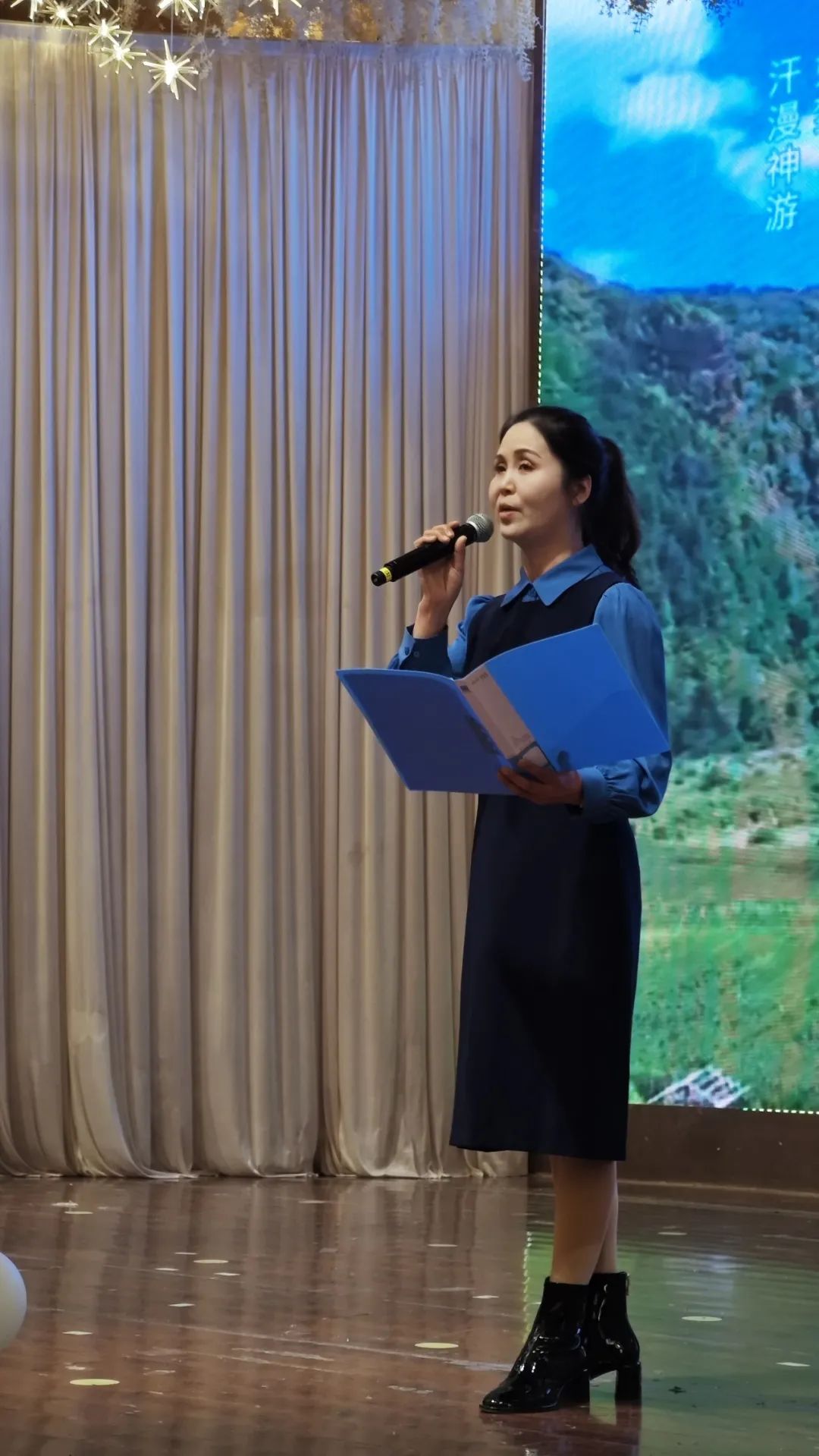 活动在开场舞《二曲春早迎远客》的精彩表演中拉开了帷幕,接下来的节目有朗诵《诗韵周至》《十里水街》《楼观台》《仙游诗赋》等原创作品,演员们登上这多彩的舞台,或慷慨激昂,或轻盈婉转,将满腔的真情融入触人心弦的朗诵,观众通过舞台上大屏展现的周山至水的优美画面和聆听着那些浓缩着热爱家乡的丰富情感,蕴涵着优美意象的诗词曲赋,一起品味着关中明珠金周至人文历史的隽永多彩,共同感受着金周至名闻遐迩、以及令人梦幻般的美景。周至经典的千古风韵在观众的心中荡漾,令人心驰神往。