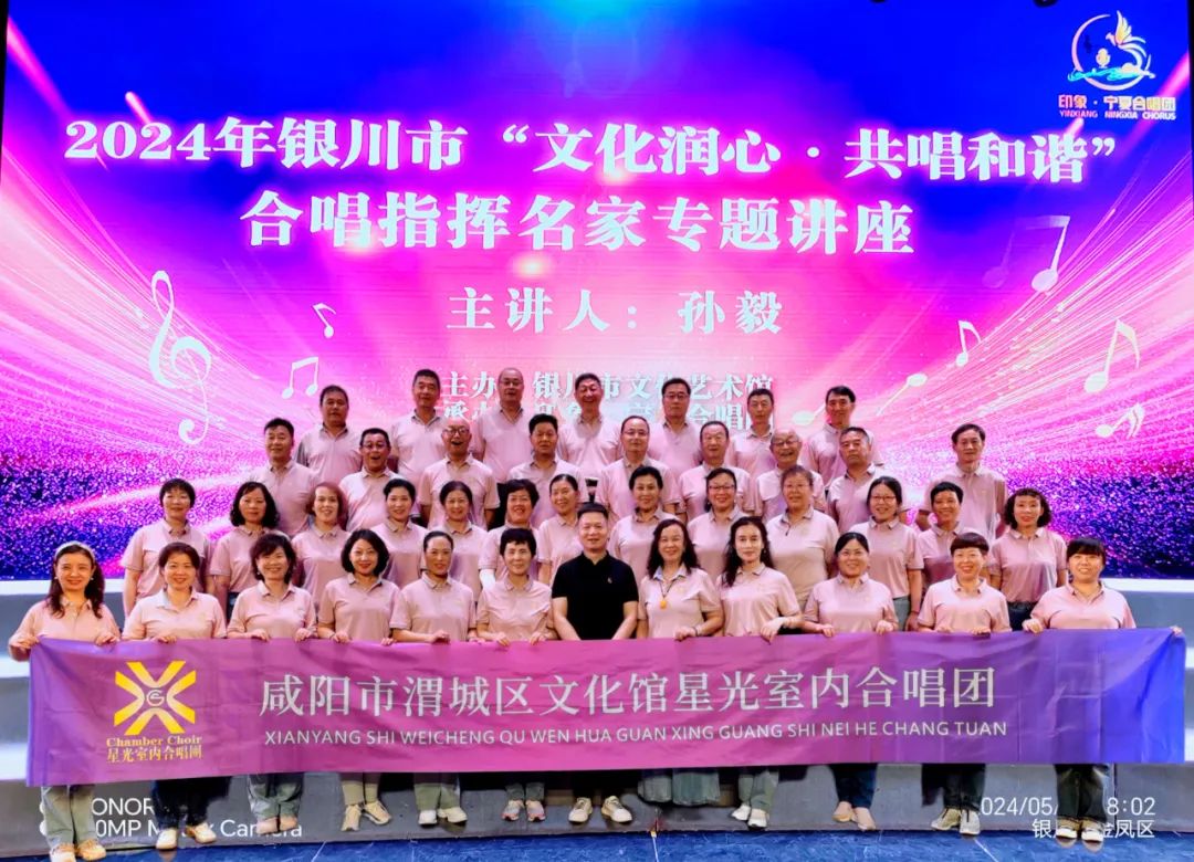 5月8日,渭城区文化馆星光室内合唱团赴宁夏银川交流学习,参加由银川市文化艺术馆主办的2024年银川市“文化润心·共唱和谐”合唱指挥名家专题讲座,本次专题讲座由爱乐男声合唱团常任指挥孙毅老师主讲。