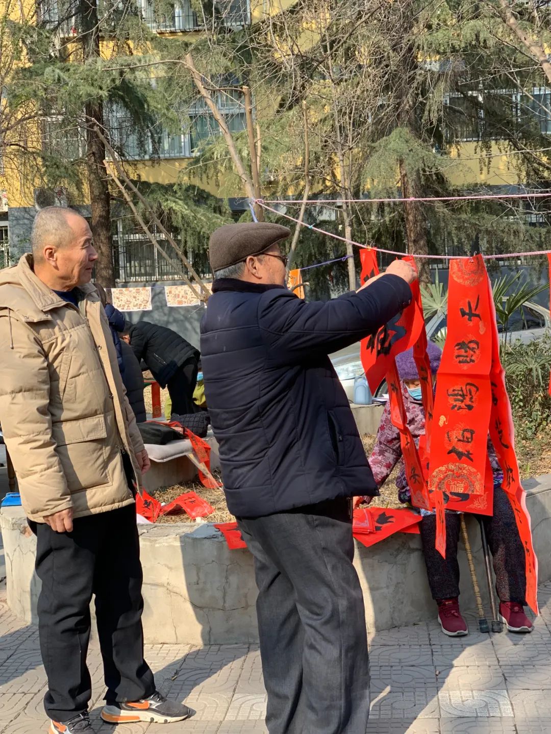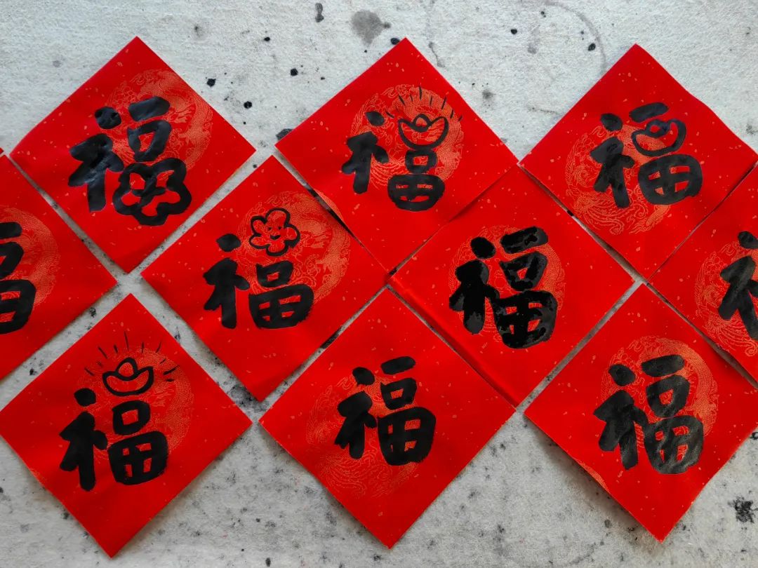 红红的春联、大大的福字传递了传统艺术的魅力,散发出浓浓的年味。活动现场不仅有社区里的书法能人,还有专业的书法老师受邀挥毫泼墨,他们笔走龙蛇,一笔一划笔力雄健,楷书、行书等各种字体跃然纸上。 居民们高兴地从老师们手中接过充满年味的春联、福字,欣喜不已,脸上洋溢着幸福的笑容,他们将红春联平铺晾晒,形成一道红色的风景,现场一派喜庆热闹,洋溢着浓浓的年味。