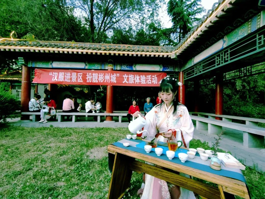 汉舞华裳,穿越千年。着一袭汉服,赴一场千年之约。5月20日下午,彬州市文化馆组织的“汉服进景区 扮靓彬州城”文旅体验暨文化馆服务宣传周活动在豳风公园举办。