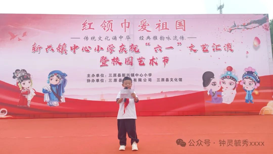 新兴镇人民政府副镇长贺蕤、三原县演艺有限公司副经理丁君、三原县文化馆副馆长董小兵、新兴镇文化站站长靳东东参加了新小庆"六一"活动,为孩子们送去节日的祝福和礼物。本次活动还邀请了新兴镇中心幼儿园、张家坳幼儿园、柏社小学、西段小学、管道小学领导和师生代表以及参演团队和我们一起共庆“六一” 新兴镇人民政府副镇长贺蕤致辞 节目一开始,一首欢快的开场舞曲《茉莉花》迅速点燃了现场的气氛。紧接着,各年级的同学们纷纷上台,展示了各自的才艺。其中,秦腔社团的《秦韵悠扬》精准演绎了秦腔独特的唱腔与身段,值得肯定他们的努力和成就;一年级的舞蹈《一年级》可爱又活泼,赢得了观众们的阵阵掌声;四年级的诗经诵读《子衿》以悠扬的声线和沉稳的节奏,将古老的文字赋予了新的生命;葫芦丝社团的《竹楼情歌》旋律优美,他们生动的演绎和默契的配合赢得了观众们的热烈喝彩…… 此外,学校还特别邀请了家长参与活动,与孩子们一起度过这个特别的节日。家长们不仅观看了孩子们的精彩表演,还给孩子们在上台先加油、鼓励,增进了亲子之间的感情。 整个文艺汇演持续了近三个小时,期间观众们掌声不断、笑声连连,并同步在抖音平台进行直播,荣获超过了两万点赞,观众们广泛喜爱和认可。孩子们在舞台上尽情展示自己的才华和风采,用自己的努力和汗水换来了观众们的广泛喜爱及赞誉。这次活动不仅让孩子们度过了一个快乐而有意义的节日,也让他们感受到了成功的喜悦和成长的快乐。 在六一儿童节这个特殊的日子里,我们希望通过这样的文艺汇演活动,为孩子们营造一个快乐、健康、和谐的成长环境。让孩子们在欢声笑语中度过一个难忘的节日,同时也让他们在艺术的熏陶下茁壮成长。 最后,让我们共同祝愿所有的孩子们节日快乐!愿他们在未来的日子里继续追逐梦想、勇往直前!(图/文 新兴镇中心小学)