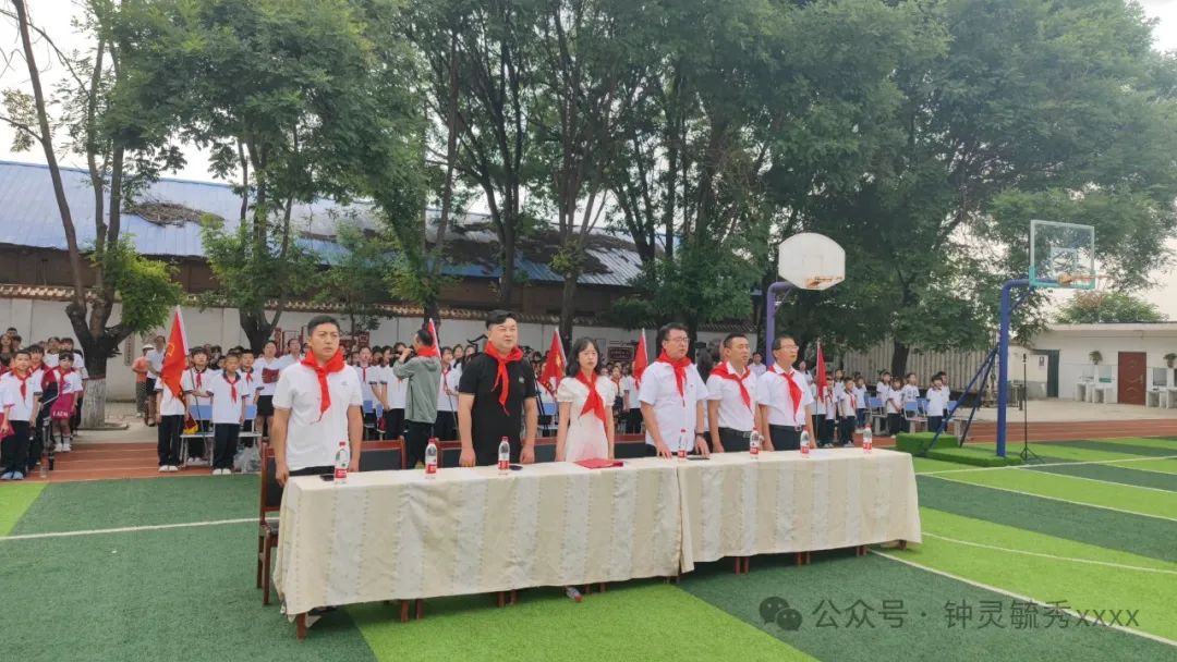 少先队员新队员入队仪式于上午8:30举行。在《中国少年先锋队队歌》的歌曲中,大队辅导员王琳老师宣布12名一年级新生光荣加入了中国少年先锋队组织,所有入队的一年级小学生面带兴奋的笑容,站立成整齐的队伍。
