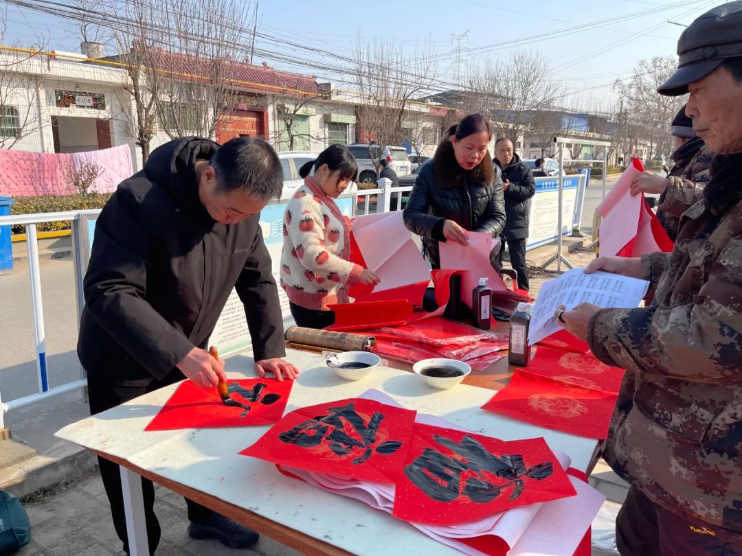 “看到老师们矫若游龙、笔走龙蛇的对联作品,真是舍不得挂,真想珍藏起来。”村委会工作人员激动地说道。这是群众对老师们书法作品的认可,也是对“五送五进”活动的充分赞扬。老师们义写春联200余幅、福字100余张。活动现场红幅铺展、浓墨飘香、气氛热烈,群众个个喜气洋洋,脸上洋溢着幸福的笑容。