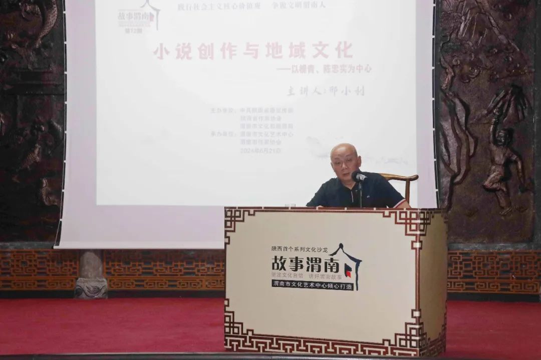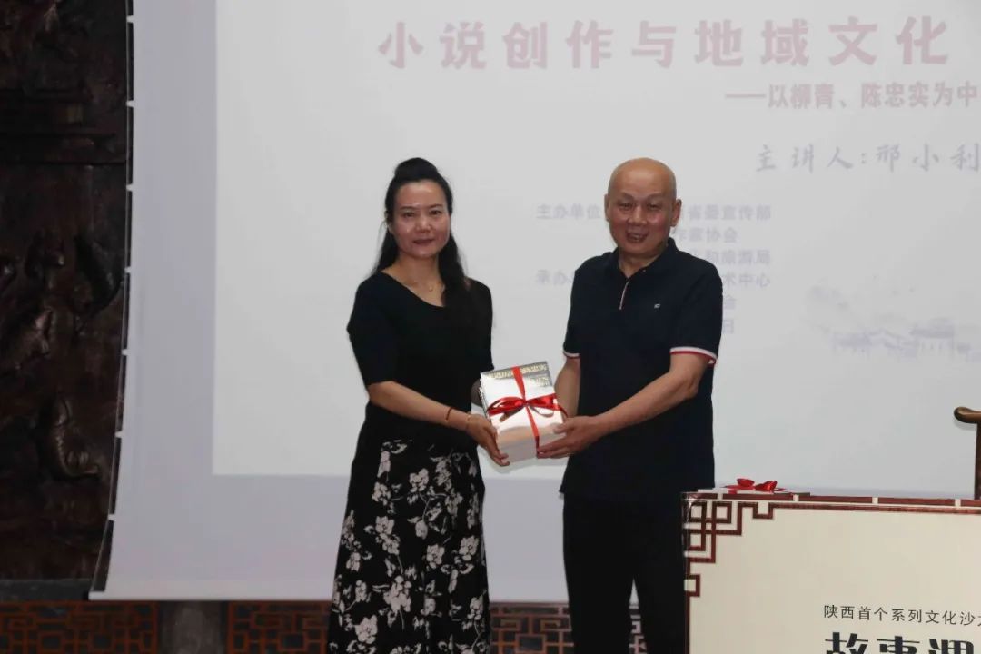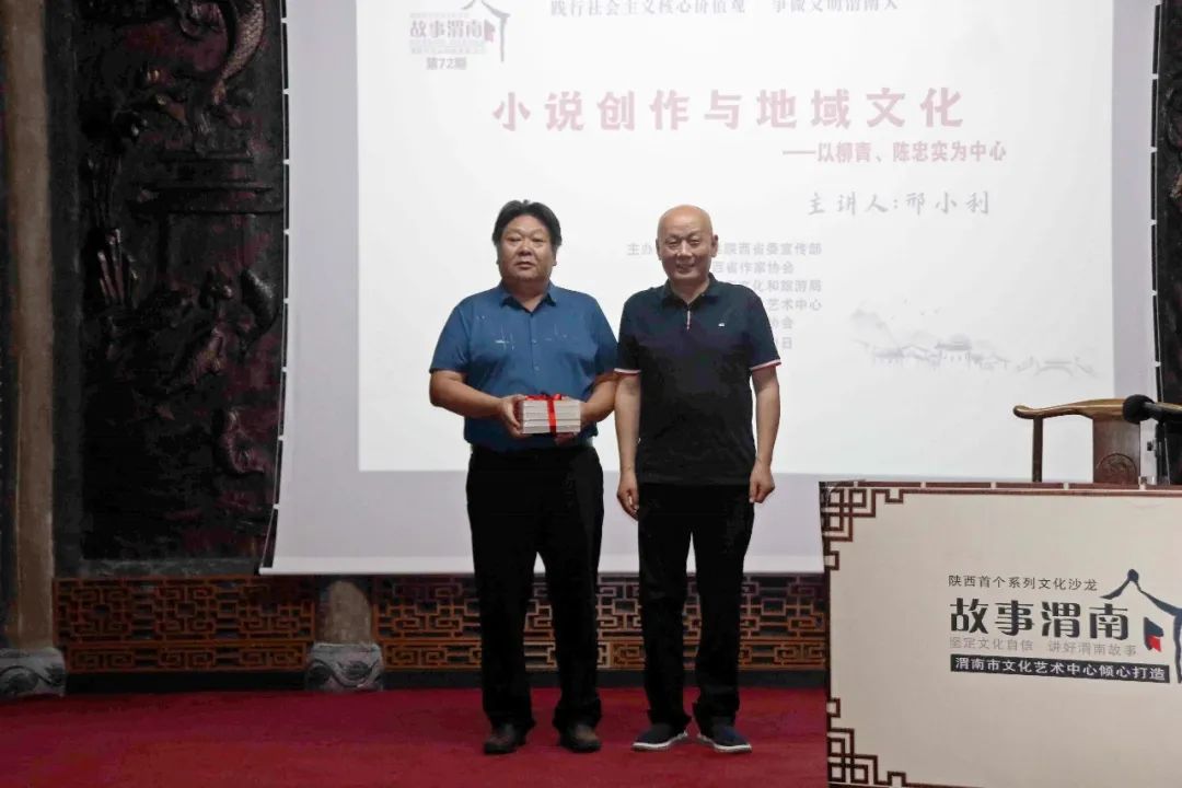 本期讲座邀请到国务院政府特殊津贴专家、陕西白鹿书院常务副院长邢小利,以柳青、陈忠实作品为例,掺以关中乡村方言特点,解读解析小说和地域文化的相辅相成和契合点,以小见大、以点带面,阐释关中地域文化的博大、深邃。 讲座现场,邢小利以小说创作为切入点,以地域文化的独特性为索引,从乡土小说与城市小说、小说创作与地域文化、书写地域文化的意义及目的等方面阐释了民俗文化在小说创作中的重要意义,着重剖析了《创业史》《白鹿原》两部作品,阐明小说是民族的秘史,是时代历程中的见证者和记录者,解读时代、历史与生活在创作过程中密不可分的关系,谈到柳青,谈到路遥,谈到陈忠实,谈到贾平凹,他们无不是在以文字书写乡情,无不是在以文学彰显地域文化,却又在以文学的名义体悟着地域文化的厚重和浓郁! 互动环节,邢小利教授就现场文学爱好者提出的问题进行了详细的解答,也为其在今后的创作提供学习和借鉴的可能。 向渭南市文化艺术中心赠送图书 向渭南市作家协会赠送图书 渭南市文化艺术中心发挥《故事渭南》阵地作用,积极联合陕西省作家协会“文学润心·精神铸魂”送文学进基层公益讲座,引导全市作家和文学工作者坚定文化自信,践行国之大者,立足本土,弘扬黄河文化,讲好中国故事,为渭南文学文艺创作贡献力量。