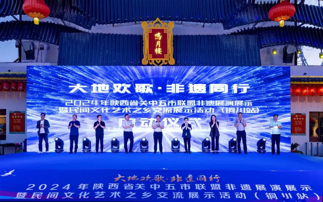 本次活动在铜川市非遗传承开发利用中心(铜川花月荟)举办。省文化和旅游厅非遗处二级调研员张智林出席,陕西省文化馆副馆长王茵致辞,铜川市文化和旅游局副局长吴向东讲话,并与西安市群众艺术馆馆长、西安市非遗保护中心主任白利群,咸阳市群众艺术馆馆长、咸阳市非遗保护中心主任李军,宝鸡市群众艺术馆党总支部书记王龙,渭南市文化艺术中心主任、非遗保护中心主任田建,铜川市群众艺术馆馆长、非遗保护中心主任井小溪,铜川市电视台台长张长江共同启动盛典,铜川各区县文化和旅游局、文化馆相关领导出席活动。 本次盛会由陕西省文化和旅游厅指导,陕西省文化馆、五地市文化和旅游局主办,西安市群众艺术馆、宝鸡市群众艺术馆、咸阳市群众艺术馆、铜川市群众艺术馆、渭南市文化艺术中心承办。活动现场,西安、宝鸡、咸阳、铜川、渭南五市非遗精华汇聚一堂,五十余位非遗传承人展技艺、传文化、促交流,独具关中特色的非遗展演节目轮番登场,令现场市民游客拍手称绝。渭南市非遗项目黄河老腔《黄河谣》、华山戏法登台演出。渭南市临渭草编、千年倒缸醋、秦源黑陶、建奇旋面、华州皮影非遗项目参加了展示。同时,活动中还开展了民间文化艺术之乡交流展演及五地文化旅游推广,促进文旅产业的繁荣发展。 “大地欢歌 非遗同行”关中五市联盟非遗展演展示与民间文化艺术之乡交流活动旨在通过非遗展演展示和民间文化艺术交流,进一步挖掘和展示关中五市丰富的非遗资源和深厚的文化底蕴,让更多的人了解和认识非遗,增强文化自信和民族自豪感。同时,增进各地之间的文化认同和交流合作,推动文旅融合,为社会经济发展注入新的动力。该活动于4月28日在西安启动,后续将在5月19日(渭南站)、5月24日(咸阳站)、5月31日(宝鸡站)巡回展演,敬请期待。