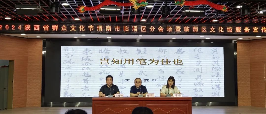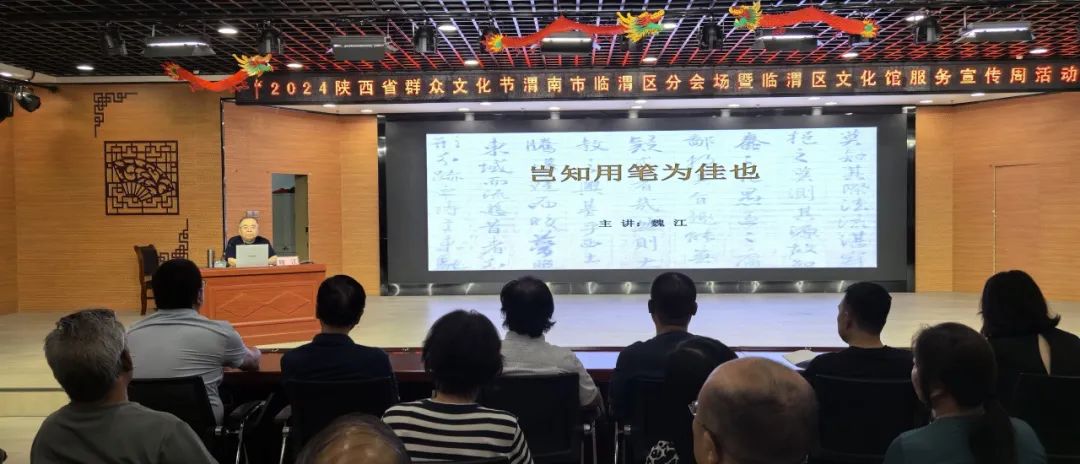 收费信息:免费5月24日,由临渭区文化馆主办,临渭区书法家协会承办的“黄河华山 家在渭南”2024陕西省群众文化节渭南市临渭区分会场暨2024年临渭区文化馆服务宣传周活动---临渭书法大讲堂在文化馆一楼多功能厅举行。 中国书法家协会会员、陕西省草书委员会委员、渭南市书协副主席魏江,临渭区文化馆馆长钟娟,临渭区书法家协会主席史建军出席本次活动。 本次大讲堂由中国书法家协会会员、陕西省草书委员会委员、渭南市书协副主席魏江以《岂知用笔为佳也》为题,与大家共同探讨和领略书法的魅力。