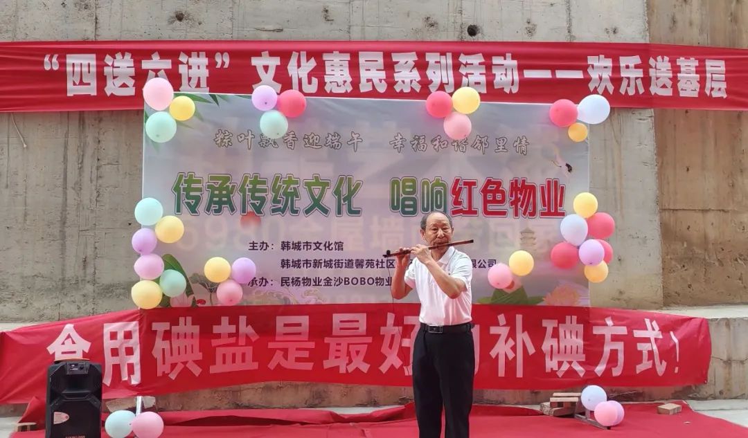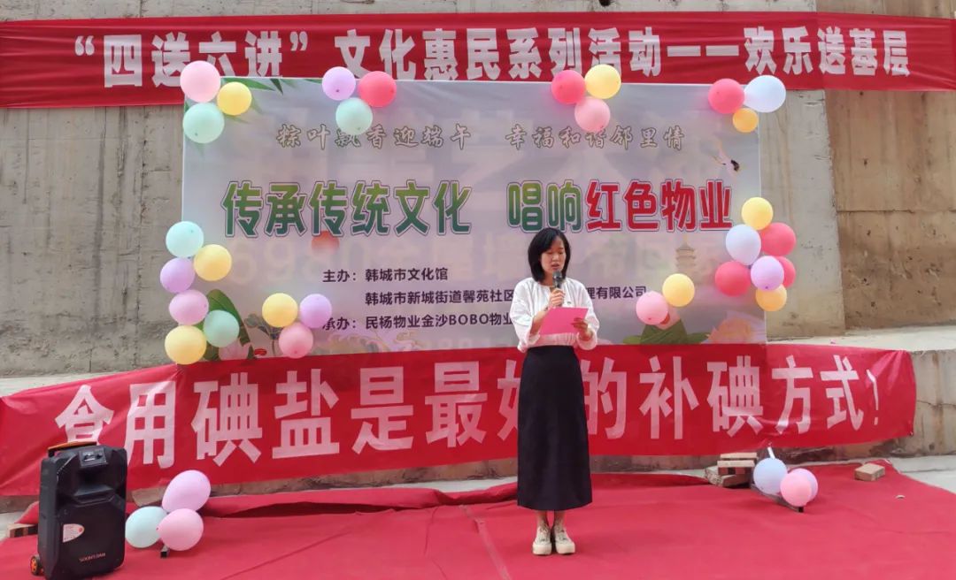 六月莺歌燕舞日,又到粽味飘香时。为弘扬中华民族传统文化,丰富群众的精神文化生活,促进邻里和睦,6月6日,市文化馆、新城街道馨苑社区开展“粽叶飘香迎端午 幸福和谐邻里情”欢乐送基层文化惠民活动,文化志愿者们为社区群众送去精彩的文艺节目和端午节祝福。