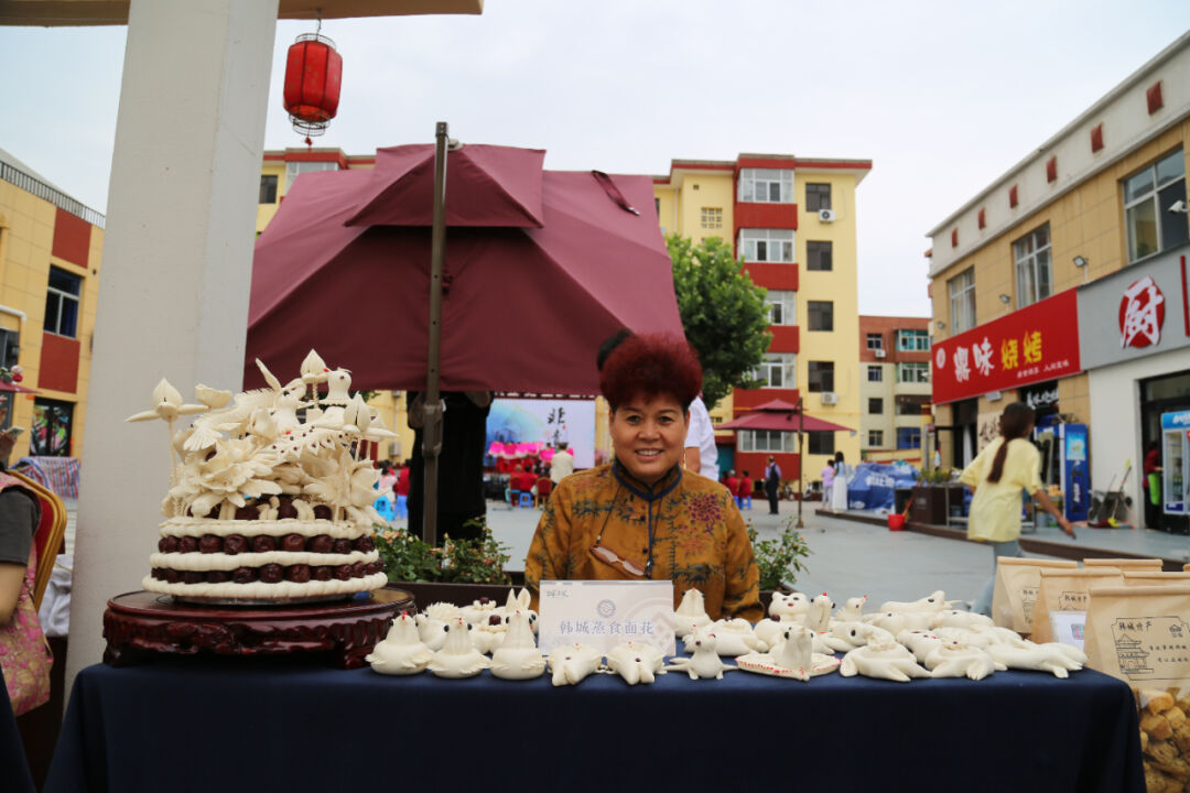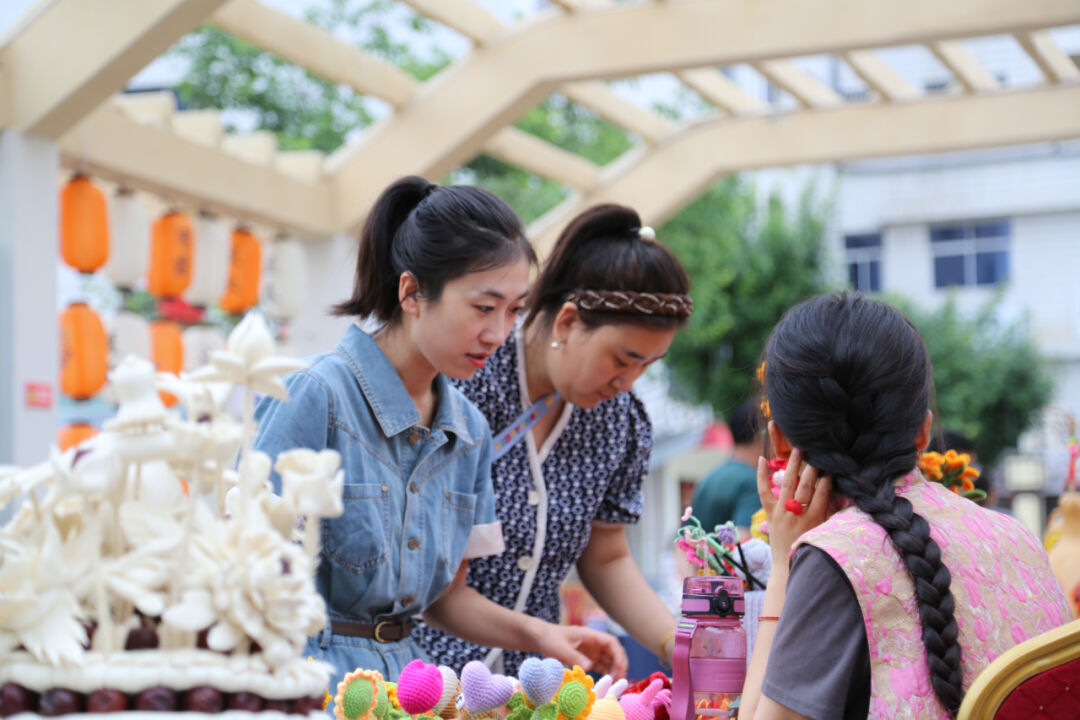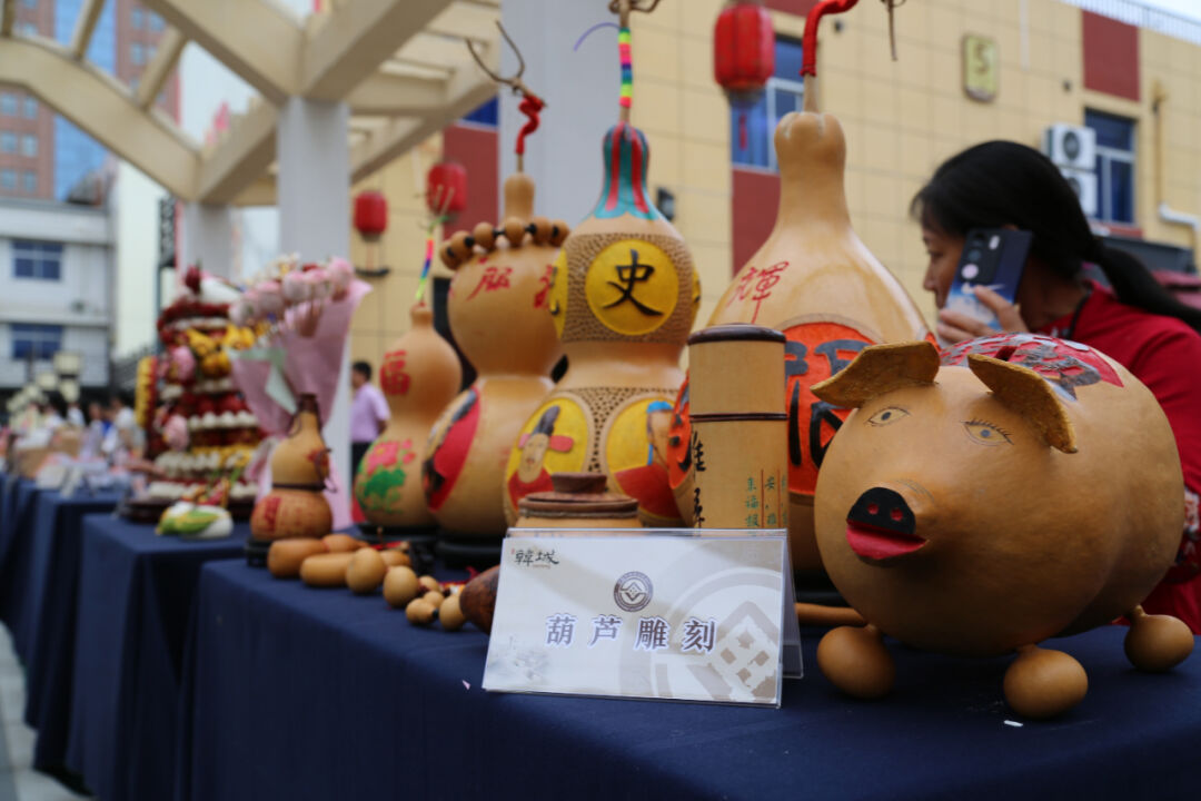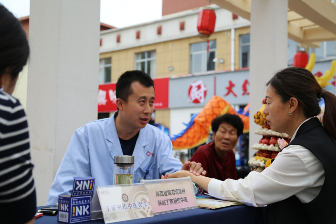 在非遗展示体验区,22家非遗工坊及非遗传承人、传统手工艺人在展示区域进行非遗产品展示、展销、互动体验。传统医药类省级代表性项目“丁家祖传中医诊法”的省级代表性传承人丁昌民携儿子丁勋为慕名而来的群众义诊;琳琅满目的非遗产品呈现出浓浓的韩城味,络绎不绝的群众欣赏着非遗产品,互动体验着各种传统文化元素,零距离感受韩城优秀传统文化的独特韵味和无穷魅力,古老的非遗在现代人的生活中“活”起来、“潮”起来 。