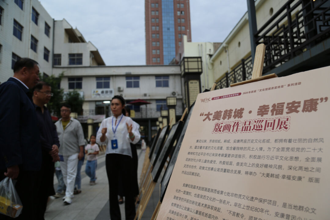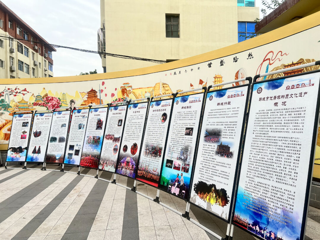 此次非遗宣传展示活动由启动仪式、非遗节目成果展演、非遗版面宣传、非遗产品成果展示、互动体验、“大美韩城 幸福安康”版画作品展、流动图书进广场、交通安全宣传互动七大板块构成,形式多样、内容丰富的活动让群众在九五街区畅享非遗购、探访非遗味、共赴非遗游。文化馆视频号此次活动进行了全程直播。