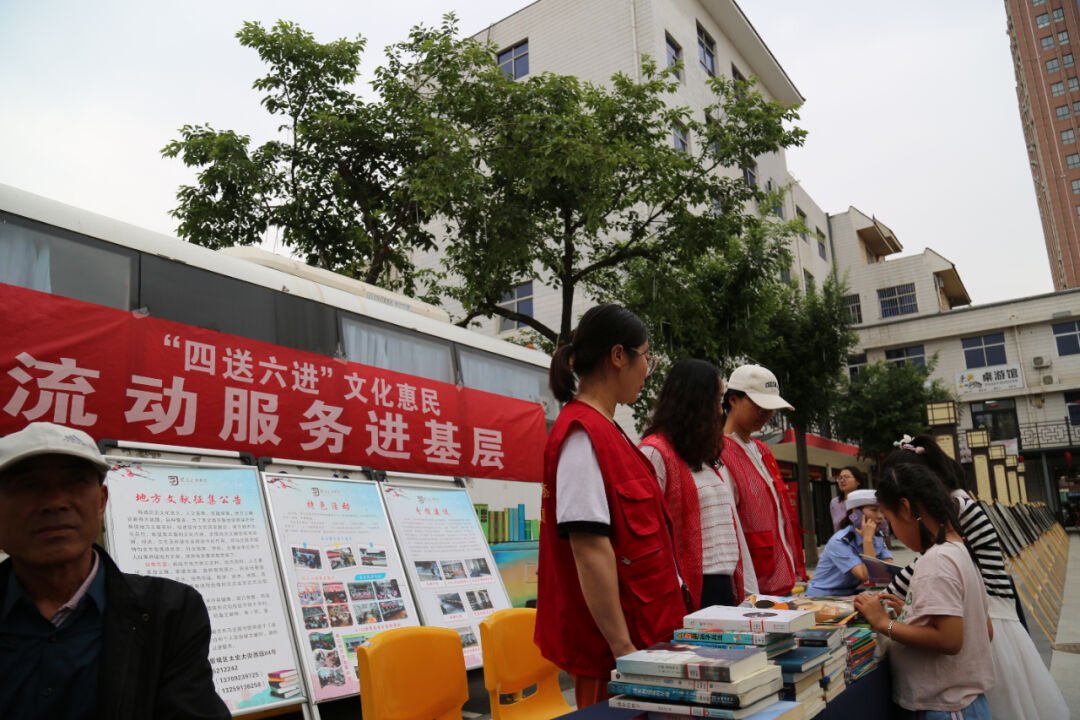 韩城市司马迁图书馆在现场开展流动服务“四进六送”活动,推动全民阅读、建设书香韩城,适逢周末,小朋友们在家长的陪同下尽享阅读乐趣。