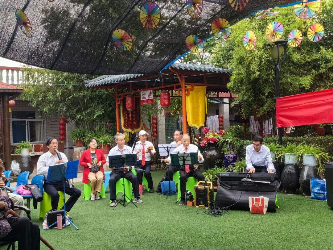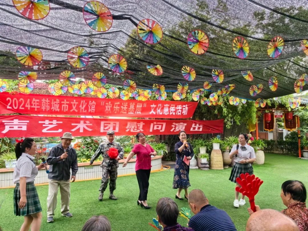 惠民演出活动在歌曲《花儿与少年》中拉开帷幕,《我爱你中国》《绣金匾》《人间第一情》一曲曲耳熟能详的歌曲,《祖籍陕西韩城县》《西湖山水》一段段经典戏曲,都是老人们喜爱的节目,大家听得入迷,笑得开心,时不时和着曲调打起节拍哼唱着,陶醉在美妙的戏曲世界里,活动现场欢声笑语,其乐融融。文化志愿者们用实际行动把党组织的关怀与温暖送到老人身边,为他们送去真心的祝福,祝他们端午节安康。