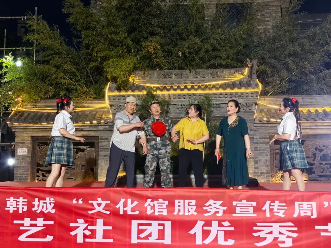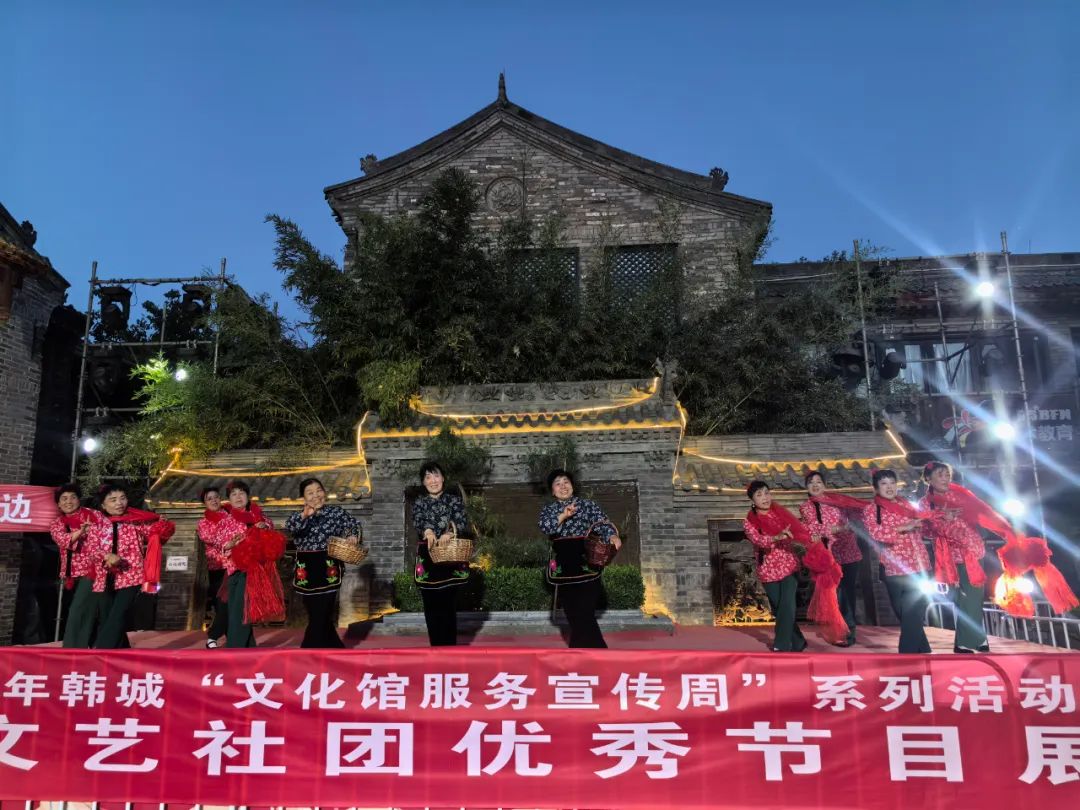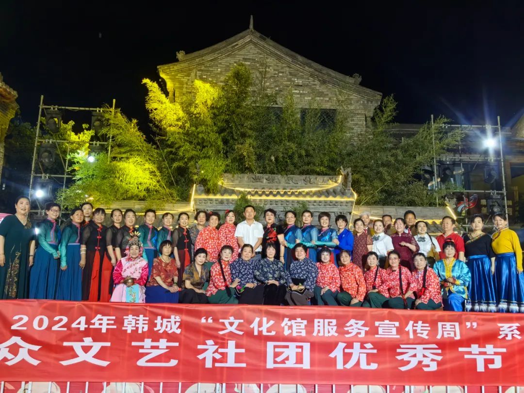 为了不断满足广大人民群众日益增长的多元文化需求,切实增强人民群众文化成果的获得感和幸福感,让文化馆成为人民的终身美育学校,5月22日晚,由陕西省文化馆、中共韩城市委宣传部指导,韩城市文化和旅游局主办,韩城市文化馆承办,陕西文化产业(韩城)投资有限公司协办的2024年韩城“文化馆服务宣传周”群众文艺社团优秀节目展演第三场在古城文化街区圆满举行。
