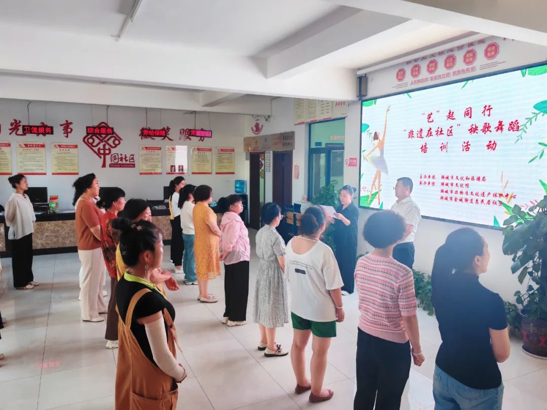 韩城秧歌以曲艺形式充分展现了具有浓厚的韩城地方特色和深厚的文化底蕴。为更好地传承和发扬非物质文化遗产,进一步丰富社区群众文化生活,让韩城秧歌在群众中发挥出独具特色的魅力,由文化馆业务干部梁蕾担任教师,针对社区干部职工、辖区舞蹈爱好者们,开展为期4天“非遗在社区”秧歌舞蹈培训工作。