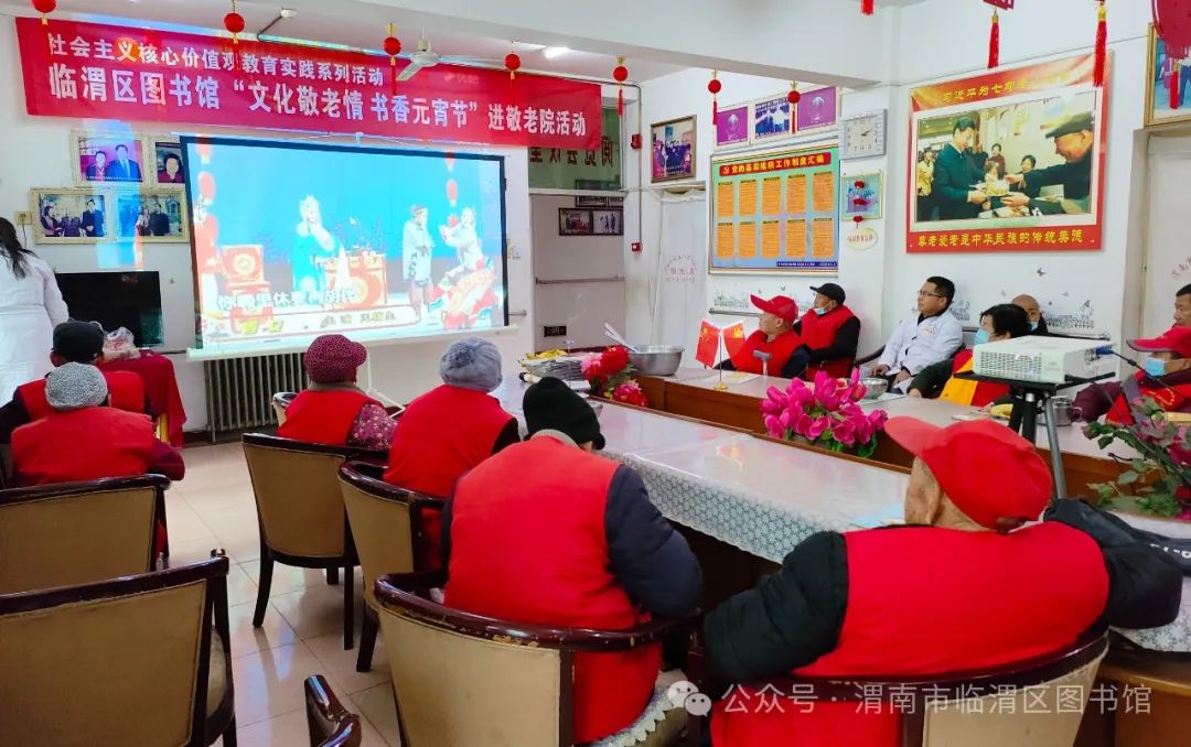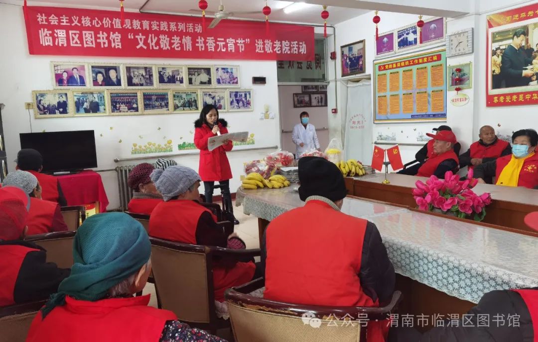 为进一步弘扬中华民族“尊老、爱老、敬老、孝老”的传统美德,丰富老人们的精神文化生活,在元宵节来临之际,2月21日下午,临渭区图书馆贺书记一行7人走进金秋敬老院开展“文化敬老情·书香元宵节”活动。
