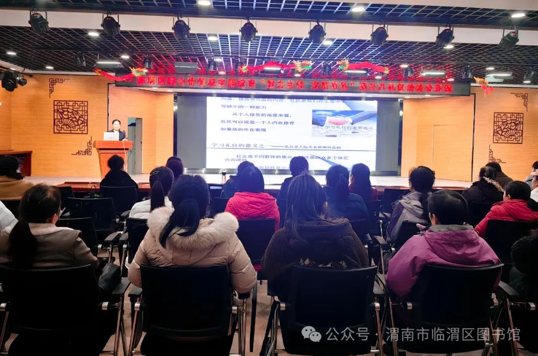 文明有礼”礼仪培训讲座隆重举办。区文体和旅游局副局长田春侠参加并讲话,近50名女性干部职工和女性读者、文化志愿者参加了此次活动。