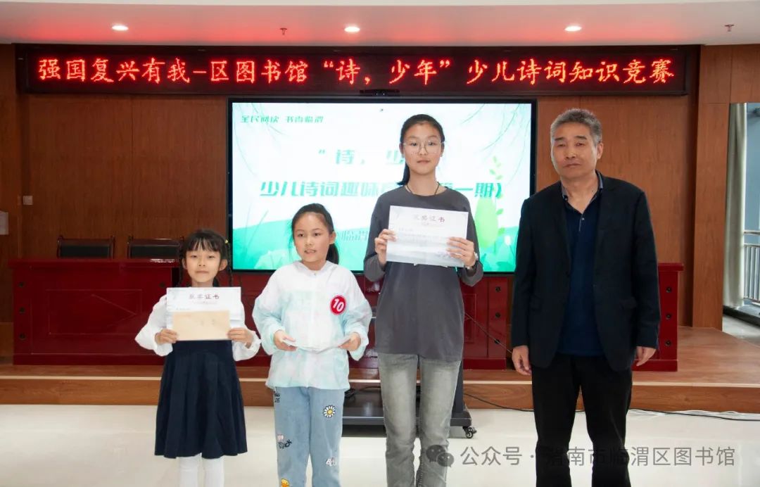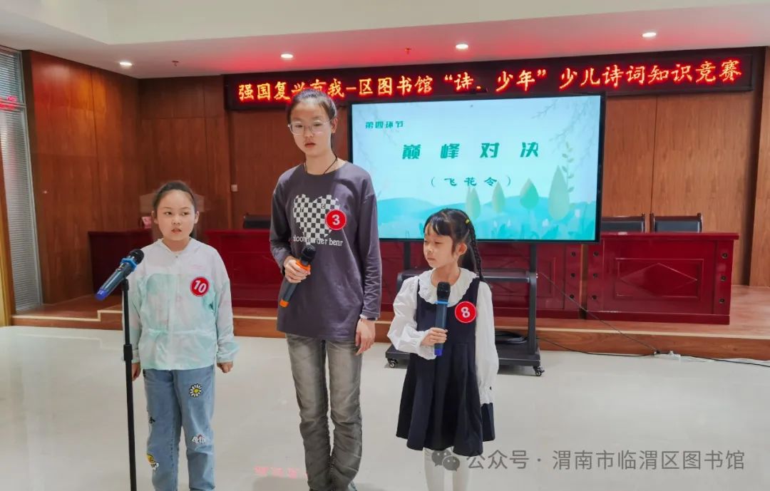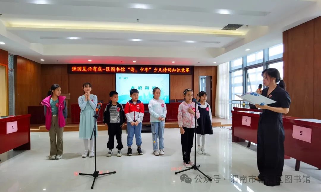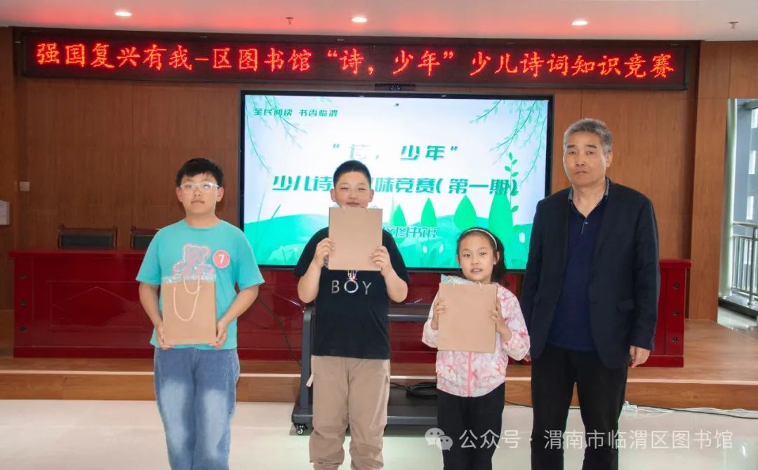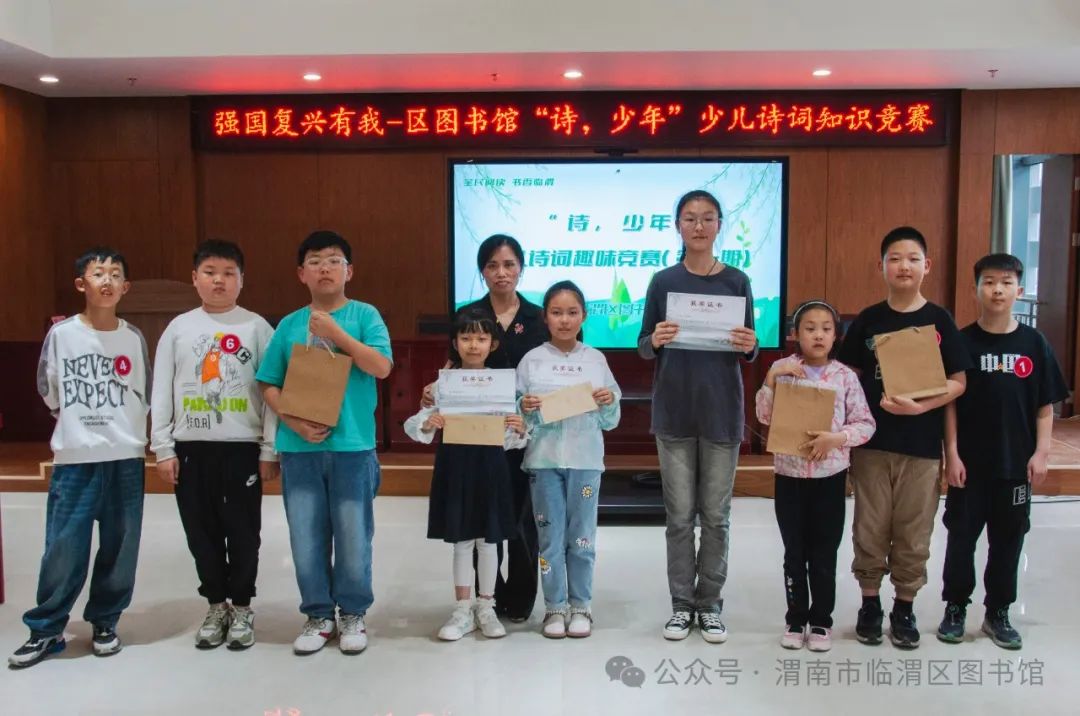诵读千古美文,传承华夏文明。“诗,少年”少儿诗词知识趣味竞赛活动是临渭区图书馆2024年着力打造的文化品牌活动,旨在传播中华传统文化,点燃少年诗心,激发少年儿童对古诗词的学习兴趣,提升少年儿童古诗词学习能力,为全区少年儿童搭建一个诗词交流,以文会友,展现自我平台。希望更多的选手走进图书馆,一起畅游诗词之旅,在比赛中学习,在交流中提升。