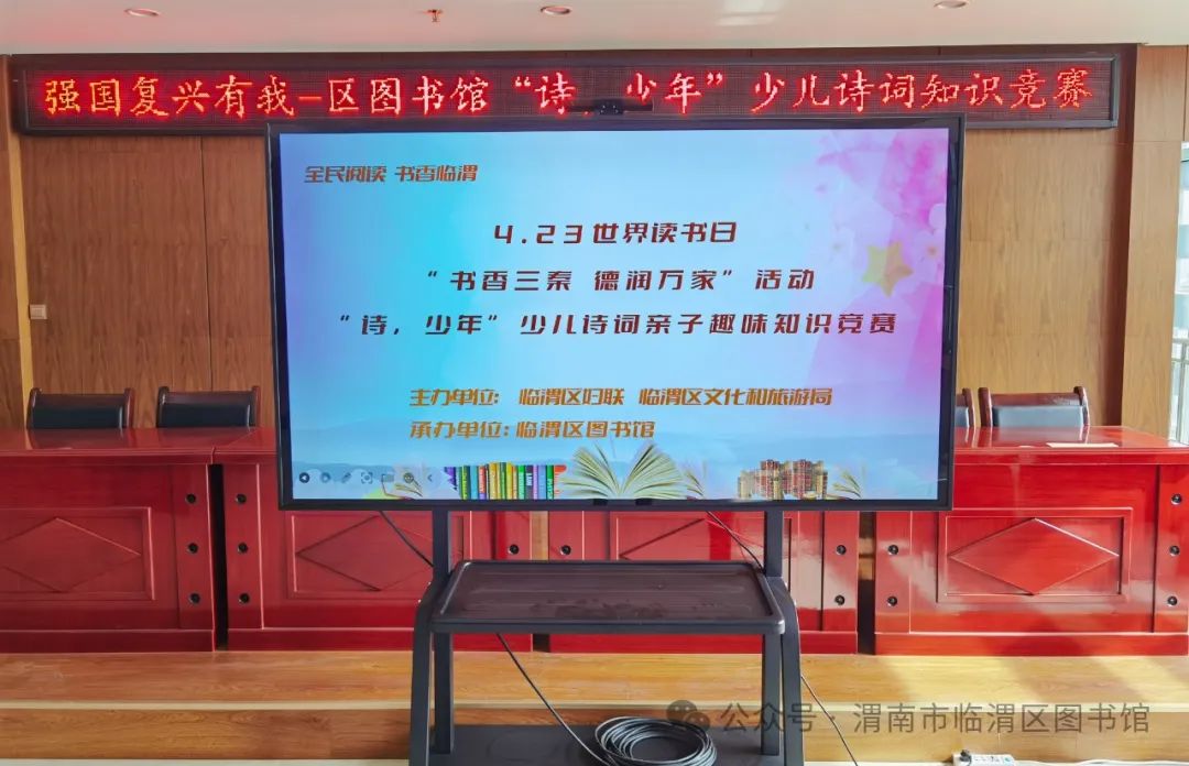 颂中华诗文,恰同学少年!4月20日下午,第一期“诗,少年”少儿诗词知识趣味竞赛活动在临渭区图书馆五楼报告厅隆重举行,本次活动由临渭区妇联、临渭区文化和旅游局主办,临渭区图书馆承办,有16名参赛小选手及其家长参与了比赛,50余人参加了本次活动。