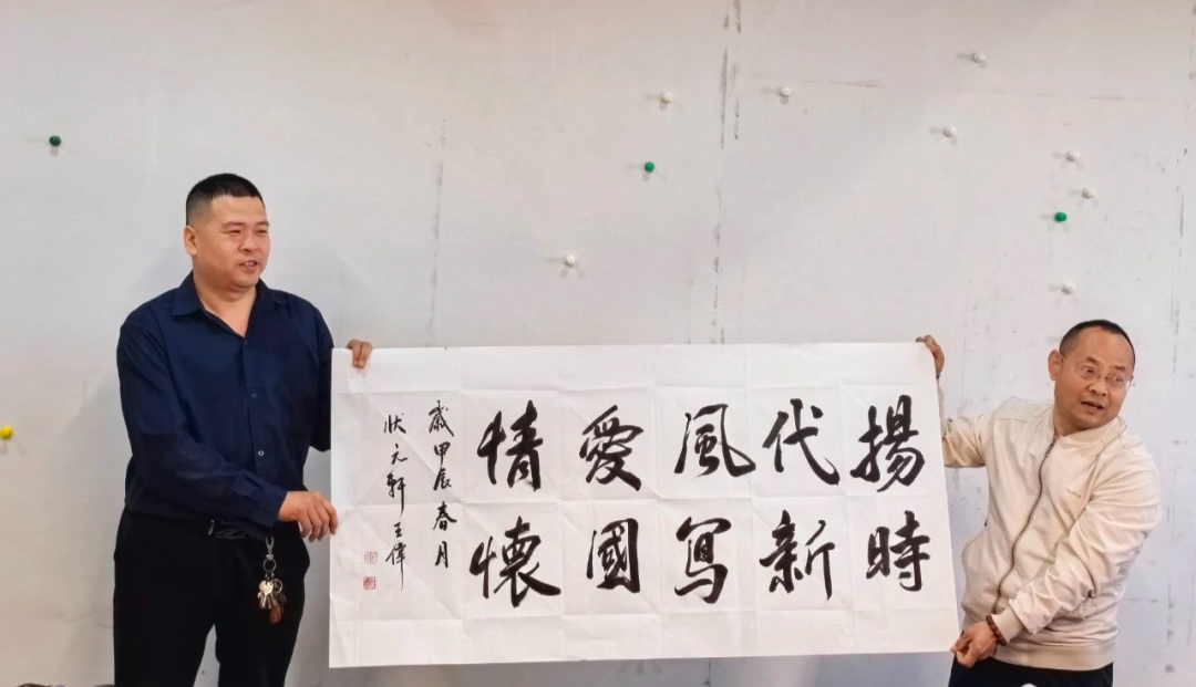 大家首先来到书画交流室,残疾人家属王伟现场泼墨,书写“扬时代新风 写爱国情怀”,残疾人朋友在观摩的同时受到鼓舞和启发。